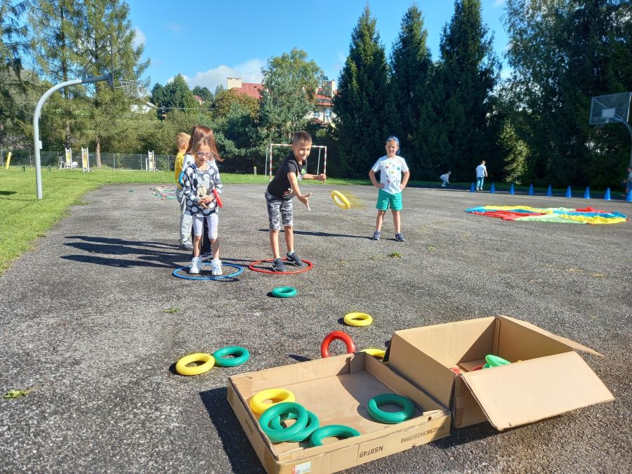 "Bo w Dniu Kropki nie o kropki chodzi…". Ten symboliczny znak ma przypominać, że każde dziecko ma talent, a naszym zadaniem jest dostrzec ten talent i wspierać w jego rozwijaniu. W tym roku postawiliśmy na aktywność fizyczną i rozwijanie talentów sportowych: skoczności, celności, koordynacji wzrokowo-ruchowej, zręczności. Motyw kropki królował na szkolnych korytarzach, w klasach, a nawet w szkolnej stołówce. Niech każda kropka stanie się początkiem pięknej historii – początkiem drogi prowadzącej do osiągnięcia celu.