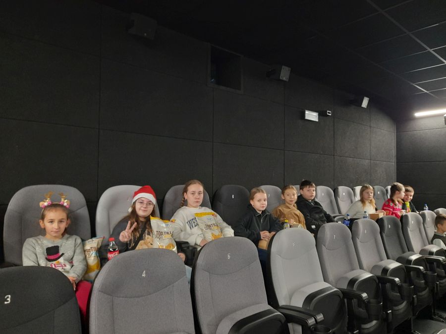 Z zupełnie innej perspektywy czwartoklasiści spojrzeli na szkolne mikołajki. Rano 5 grudnia wspólnie z wychowawczynią wybrali się do kina "Legenda" w Gorlicach. Świąteczna produkcja "Skrzat. Nowy początek" wzbudziła wiele radości i entuzjazmu. Film okazał się prawdziwą świąteczną niespodzianką. Zabawne sytuacje i wzruszające momenty uświadomiły dzieciom, jak ważna jest przyjaźń, odwaga oraz wiara w magię dobra. Uczniowie z zainteresowaniem śledzili przygody bohaterów. Wyjazd był również świetną okazją do integracji. Wspólne przeżywanie filmowych emocji oraz rozmowy po seansie stworzyły ciepłą mikołajkową atmosferę. Wspomnienia pozostaną na długo. Uczniowie wrócili do szkoły w doskonałych humorach, bogatsi o nowe doświadczenia i gotowi na dalsze mikołajkowe wydarzenia.