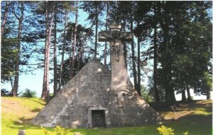 Okazały nagrobek w kształcie monumentalnej piramidy zwieńczonej krzyżem, znajduje się nie opodal pałacu na wzniesieniu wśród drzew. Ma około 10 m wysokości i 12 m długości podstawy. Jest to miejsce upamiętniające postać historyczną, ale też stanowi ciekawostkę architektoniczną. Po II wojnie światowej obiekty pałacowo – parkowe służyły jako Dom Dziecka, który w latach osiemdziesiątych przeniesiono do innego budynku na terenie wsi, do tzw. ogrodniczówki. Obecnie posiadłość wróciła do spadkobierców, dziś jest tylko rozgrabioną i rozsypującą się ruiną.