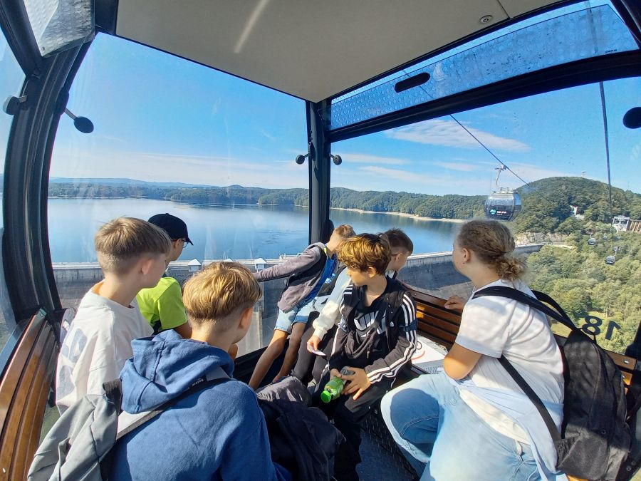 W słoneczną środę, 10 września, uczniowie klasy V i VI wzięli udział w wycieczce edukacyjno-profilaktycznej do Soliny. Bogaty w atrakcje dzień dostarczył uczestnikom wielu niezapomnianych wrażeń. Pierwszym punktem programu był przejazd najnowocześniejszą w Polsce koleją gondolową. Po wejściu na wieżę widokową uczniowie mogli podziwiać panoramę Jeziora Solińskiego, zaporę oraz okoliczne wzgórza. Następnie, prowadzeni przez urocze Rusałki, zwiedzili park tematyczny „Tajemnicza Solina”, gdzie spotkali postacie z regionalnych legend, m. in. bieszczadzkie Biesy, Czady i Olbrzymy. Interaktywne ścieżki, ślizgi, tory przeszkód i inne niecodzienne wyzwania sprawiły, że wszyscy aktywnie spędzili czas w tej niezwykłej krainie. Pyszny obiad w lokalnej restauracji pozwolił zregenerować siły. Na zakończenie uczestnicy zwiedzili solińską zaporę wodną i poznali kilka ciekawostek na jej temat. Pogoda dopisała, humory również – wycieczka była nie tylko ciekawą lekcją przyrody, historii i geografii, ale również świetną okazją do integracji i aktywnego spędzenia czasu poza murami szkoły. Podczas wycieczki uczniom towarzyszyły panie: Małgorzata Augustyn-Nowak, Barbara Kudławiec, Joanna Cieśla i Katarzyna Ciapaj.