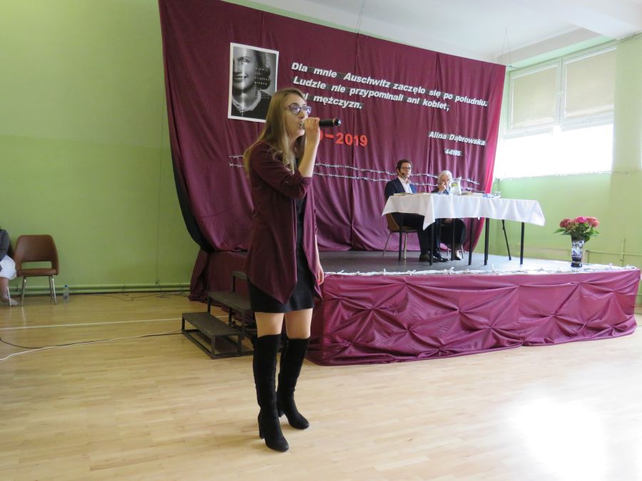 Pani Alina Dąbrowska dziewięćdziesięciosześcioletni świadek drugiej wojny światowej zjawiła się w środę 25 września 2019 roku o godz. 10:00 w Szkole Podstawowej im. Komisji Edukacji Narodowej w Zagórzanach. Moderator spotkania mgr Mateusz Jamro poznał prelegentkę podczas obchodów 70 rocznicy wyzwolenia obozu w Buchenwaldzie.