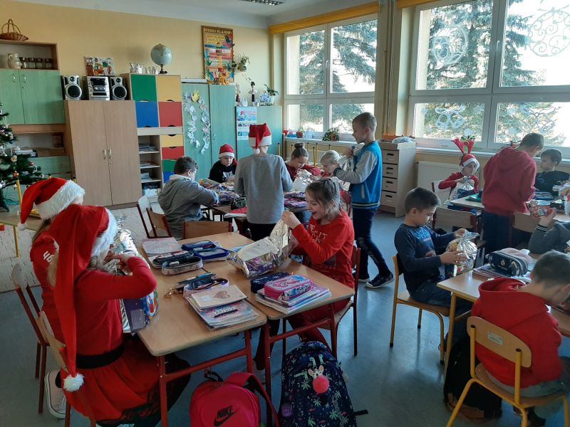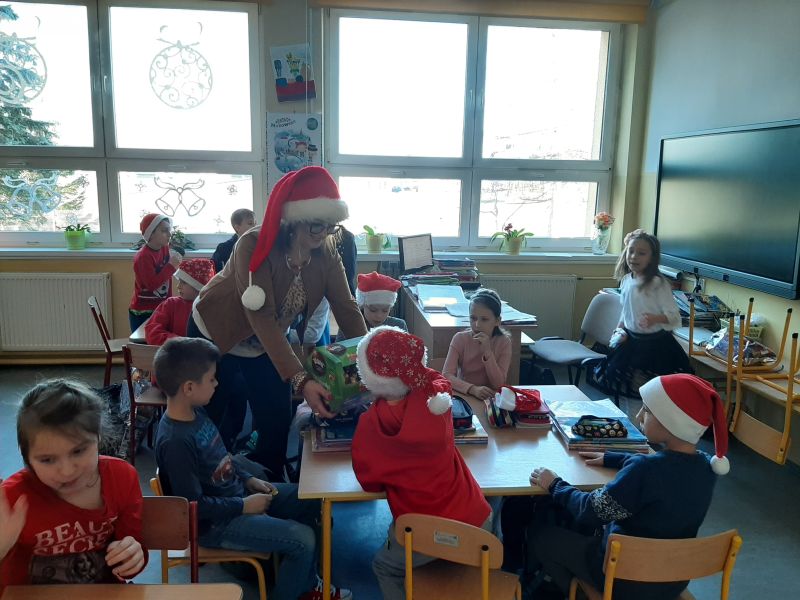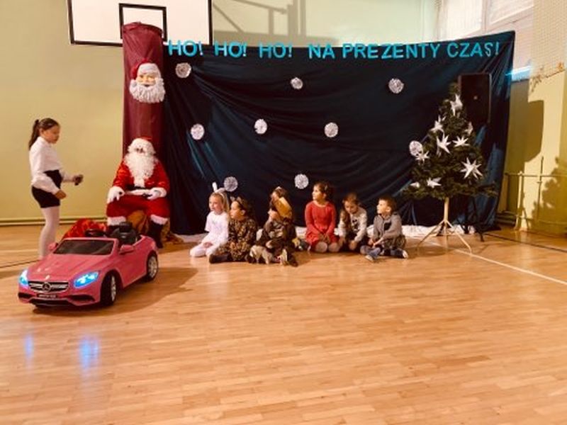 W dniu szóstego grudnia do naszej szkoły przyjechał nowoczesny, zmotoryzowany Święty Mikołaj. Brak śniegu nie przeszkodził mu w dostarczaniu upominków, na które dzieci czekały cały rok. Ku zaskoczeniu zebranych, na teren szkoły wjechał Mercredesem. Uczniowie klasy II pod opieką wychowawczyni, pani Ewy Zasowskiej, przygotowali i zaprezentowali program artystyczny pod tytułem ,,Gdzie jest worek Św. Mikołaja?". Mieszkańcy lasu, w których role wcieliły się dzieci, podjęli trud poszukiwania zagubionego worka z prezentami. Dzięki ich aktywności, kreatywności i życzliwości udało się przyłapać sprawców na gorącym uczynku, ocalić tradycję i uszczęśliwić społeczność szkolną. Entuzjazm i zadowolenie dzieci wyraziły wspólnym śpiewem piosenki ,,Święta to czas niespodzianek".