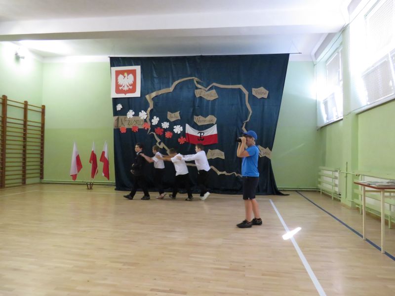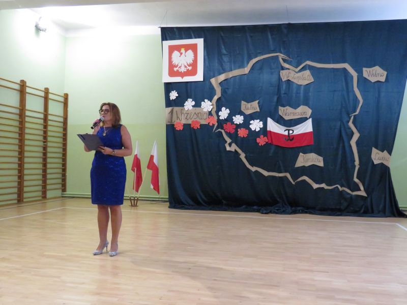 Nas normalnie dzwony kościelne wezwały na mszę świętą. W atmosferze radości i oczekiwania spotkaliśmy się w sali gimnastycznej. Wprowadzenie sztandaru szkoły i odśpiewaniu hymnu rozpoczęło inaugurację roku szkolnego. Uroczystość poprowadzili: Ola Wołkowicz i Kacper Ciapaj. Maciej Pyznar i Patryk Brach czuwali nad aparaturą i ścieżką dźwiękową. Emitowana animacja komputerowa "Niezwyciężeni" przybliżyła rocznicowe wydarzenia. Uczniowie klasy czwartej przedstawili krótką scenkę. Odważny Filip reprezentował pierwszoklasistów. Pani Dyrektor Iwona Jamro przedstawiła sprawy organizacyjne już ośmioletniej szkoły podstawowej. Serdecznie przywitała nowego księdza katechetę, Wojciecha Dudzika, a nagrody jubileuszowe wręczyła Państwu: Barbarze Kudławiec, Ryszardowi Jamro oraz Karinie Szura. Natomiast p. Anna Chochołek odebrała gratulacje za uzyskanie najwyższego stopnia awansu - nauczyciela dyplomowanego.