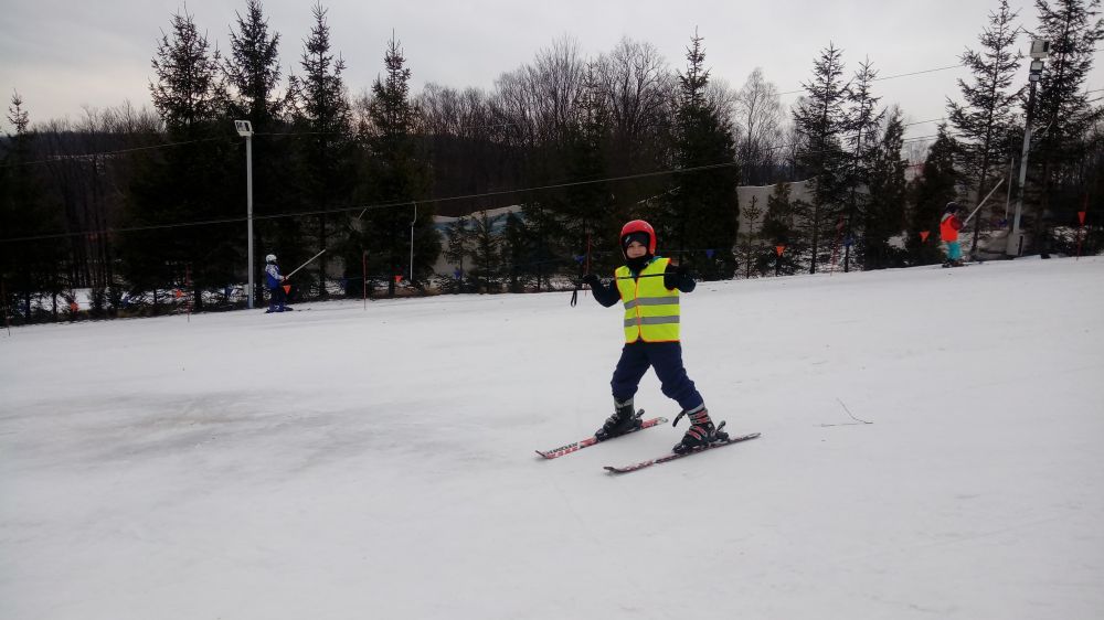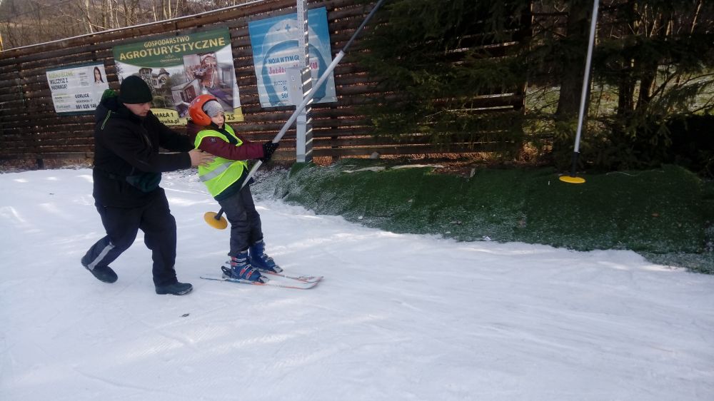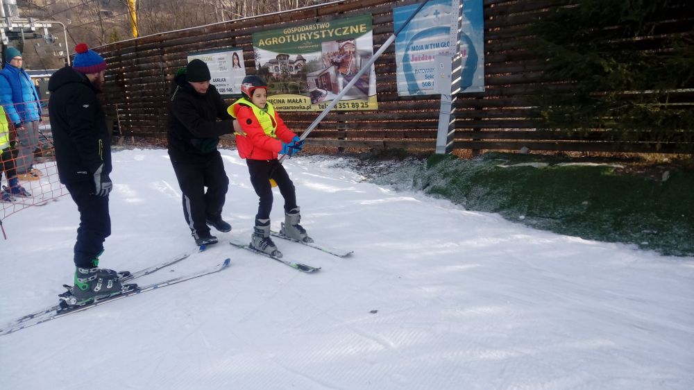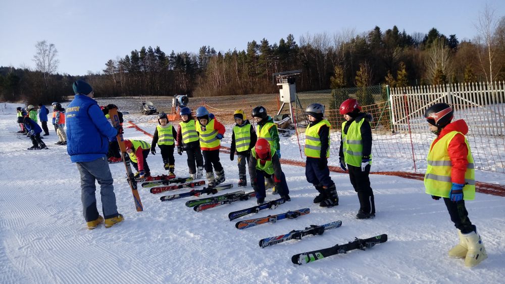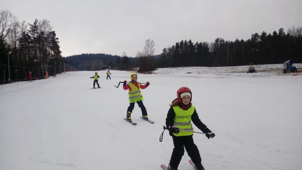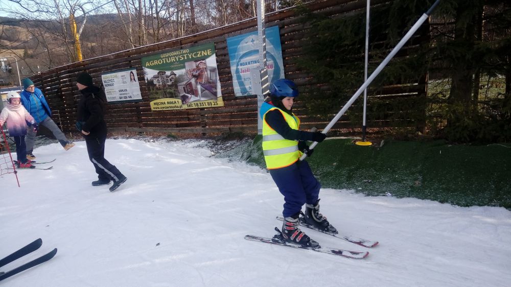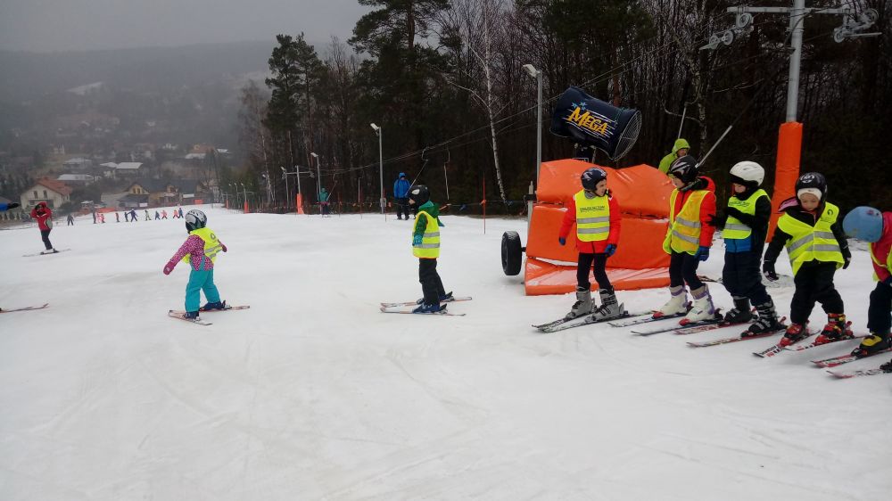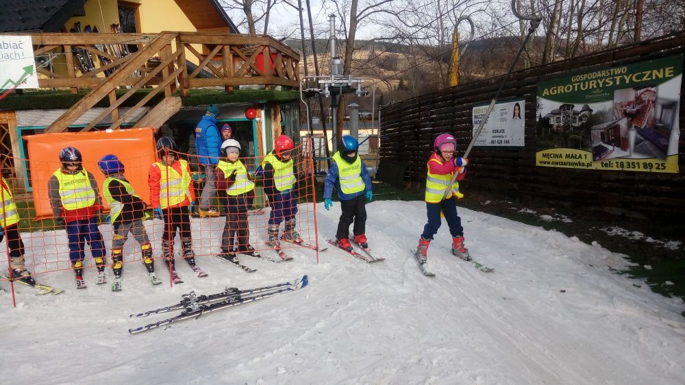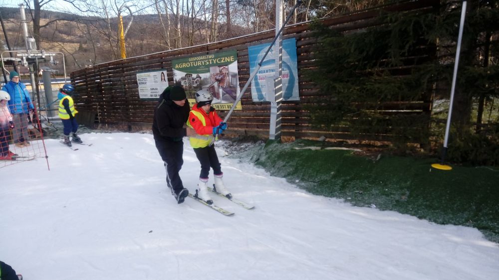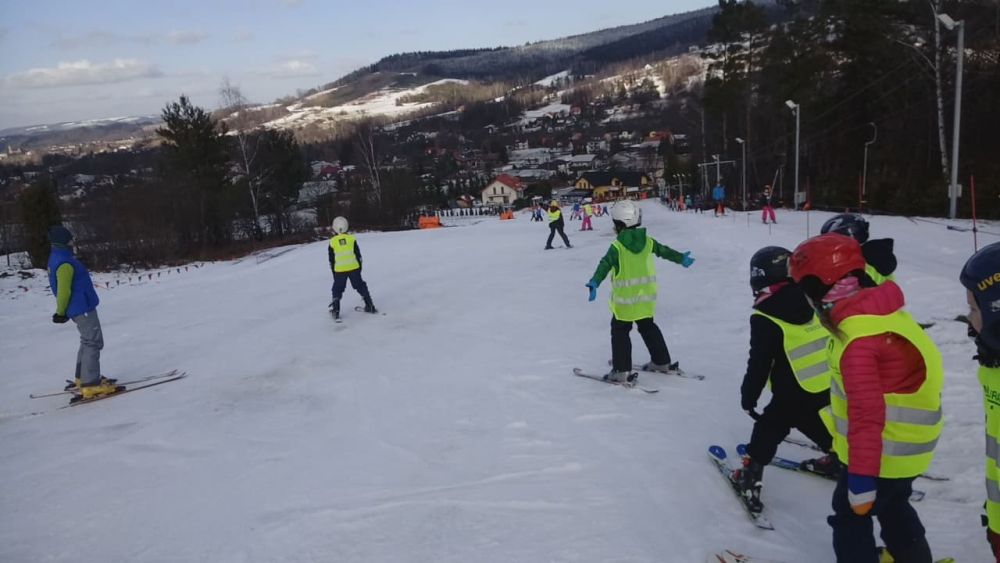 W tym roku nasza szkoła przystąpiła do projektu, dziesięcioro uczniów klas 2 - 4 realizowało zajęcia w dniach 27.01. 2020 r. do 07.02.2020 r., podczas ferii zimowych w cyklu sześciu wyjazdów po trzy godziny zajęć na stoku. Początki były trudne, ale już na drugich zajęciach, uczniowie zaczęli samodzielnie wyjeżdżać orczykiem na stok i pod opieką instruktora zjeżdżali. Pogoda nie zawsze dopisywała, było słońce, padał śnieg, ale był też deszcz, lecz mimo tego cała dziesiątka dzielnie realizowała zadanie. Kolejne wyjazdy to była już sama przyjemność, uczniowie szlifowali technikę zjazdów i coraz swobodniej czuli się na stoku. Zamiast niepewności i lęku pojawiła się radość i zadowolenie. Rodzice i dziadkowie coraz częściej przyjeżdżali podziwiać postępy swoich pociech. Wszyscy uczestnicy projektu na ostatnich zajęciach dostali od gospodarza wyciągu dyplom ukończenia kursu.