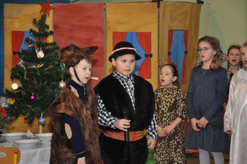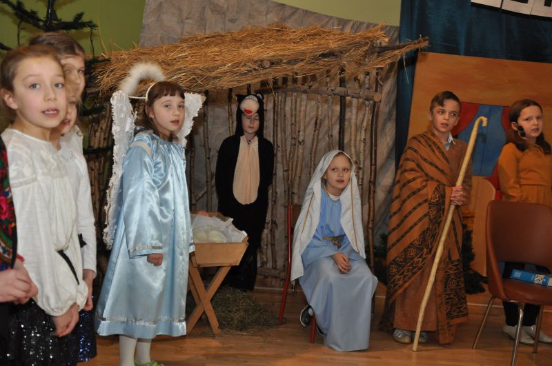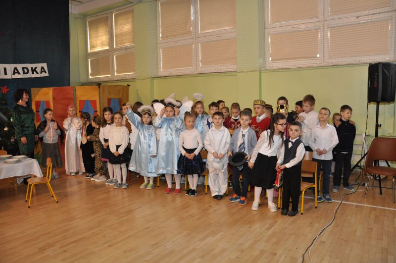 Na wstępie pani dyrektor dr Iwona Jamro przywitała wszystkich gości ciepłymi słowami i złożyła serdeczne życzenia. W pięknie udekorowanej sali gimnastycznej dzieci kl. II i III przedstawiły jasełka wigilijne "On przychodzi do nas takich, jakimi jesteśmy", natomiast pierwszoklasiści deklamowali wzruszające wiersze i śpiewali piosenki związane tematycznie z tym świętem.