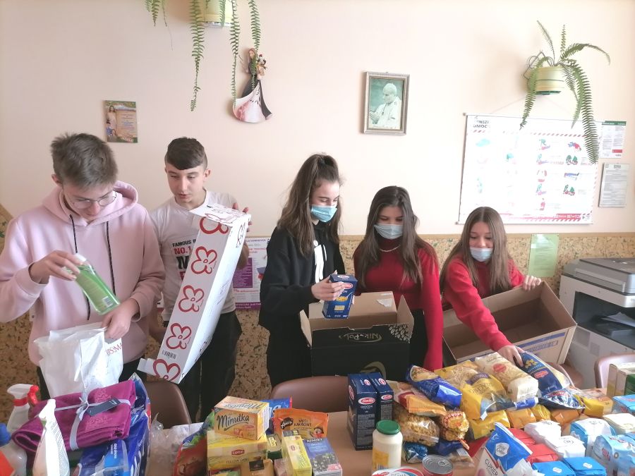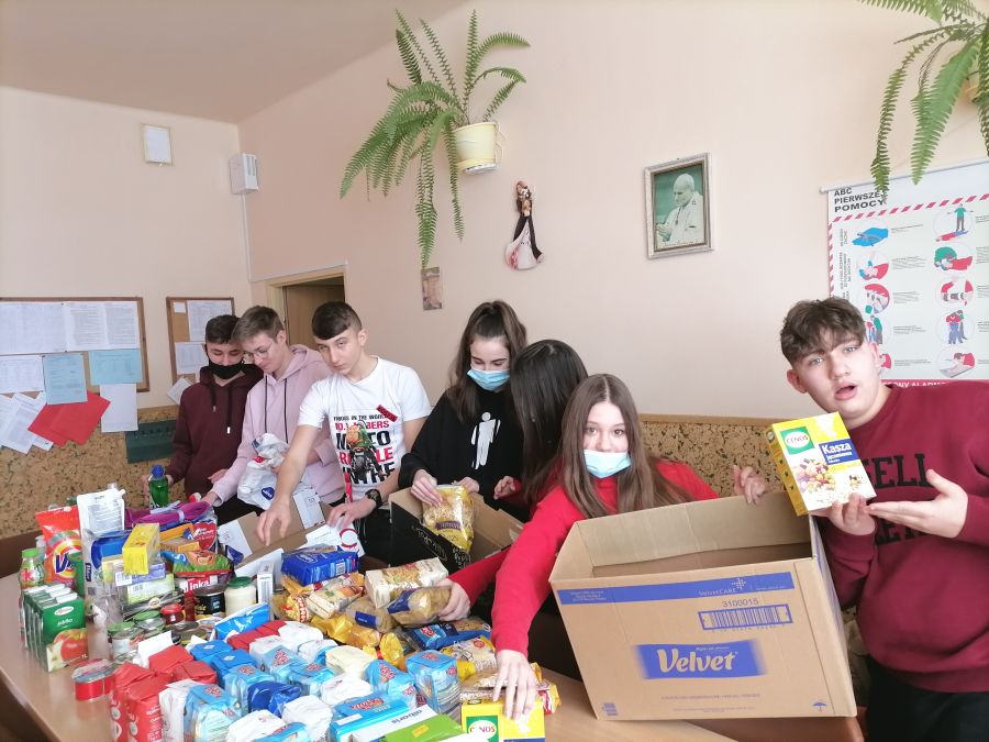 Otwórzmy serce na potrzeby innych to inicjatywa, którą zaplanowali i przeprowadzili uczniowie klasy VIII w terminie od 9 do 15 lutego br. Celem podjętych działań była zbiórka żywności i artykułów chemicznych przeznaczonych dla rodziny z terenu naszej gminy, która ucierpiała w pożarze. W akcję włączyli się Rodzice i Uczniowie wszystkich klas. Dzięki Państwa życzliwości, wyrozumiałości i hojności udało się nam przygotować paczki, które 17 lutego trafiły do poszkodowanych. Trudno opisać radość i wdzięczność obdarowanych, którzy nie spodziewali się takiej pomocy. Cieszymy się, że wspólnie mogliśmy zrobić coś, co wniosło chociaż promyczek nadziei i radości w życie innych osób. Dziękujemy za otwarte serce.
