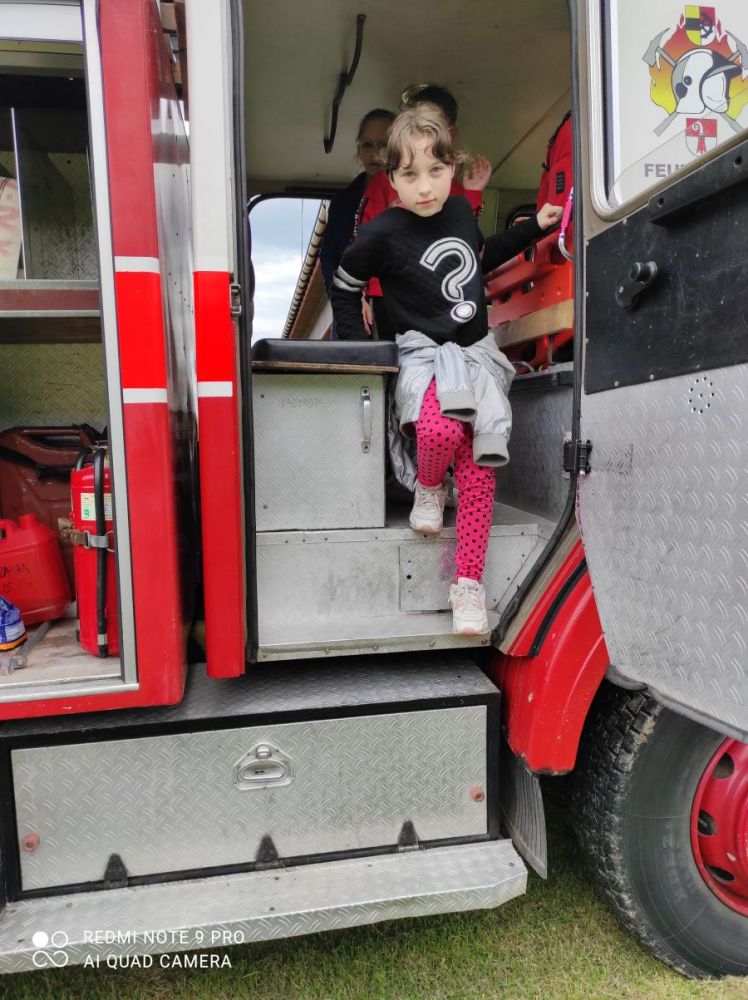A potem zaczęło się … Na szkolny plac zawitał wóz bojowy należący do Ochotniczej Straży Pożarnej w Zagórzanach. Absolwent naszej szkoły, Mateusz Firszt oraz pan Radosław Pruchnicki objaśnili wszystkim zebranym wyposażenie samochodu bojowego. Uczniowie – strażacy wyjechali na "akcję". Rozlegał się prawdziwy sygnał alarmowy, czym wzbudzili niemałą sensację w okolicy. Następnie gasili okoliczny pożar, mierząc swoje siły w utrzymaniu węża pożarniczego z wodą. Cała akcja, której obserwatorami byli uczniowie klasy trzeciej, przysporzyła sporo śmiechu i zabawy. Była też lekcją uświadamiającą trudną, niejednokrotnie narażającą życie ludzkie, pracą strażaków.