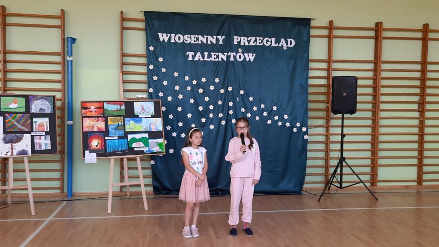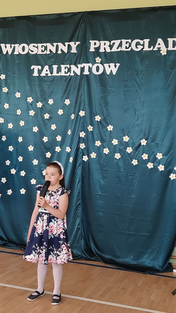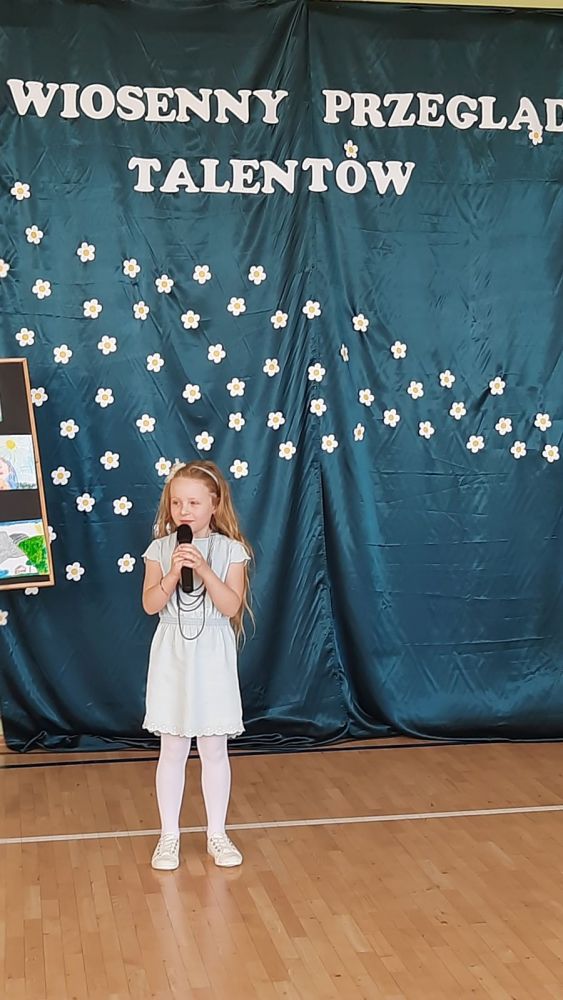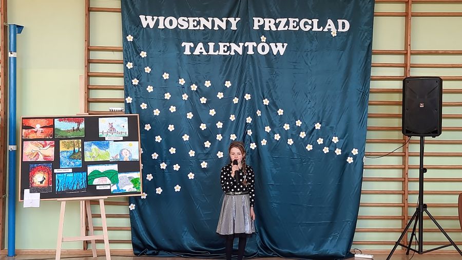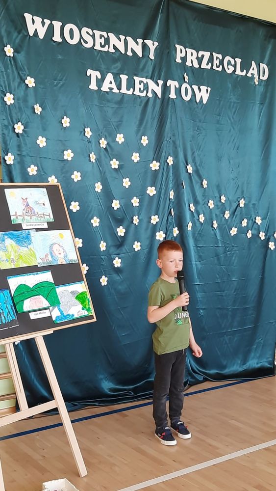Wiosenne ciepłe dni, powrót uczniów do szkoły spowodował, że w końcu udało nam się zorganizować Wiosenny Przegląd Talentów. 12 maja 2021 r. chętni uczniowie klas I–III SP zaprezentowali swoje zainteresowania, pasje, hobby, talenty. Uczniowie stanęli na wysokości zadania prezentując talenty plastyczne, muzyczne, taneczne, gimnastyczne, wokalne, kabaretowe, sceniczne. Zabawa była wspaniała, niektóre umiejętności wręcz zaskakujące. Gromkie brawa publiczności potwierdziły, że prezentacje bardzo się podobały.