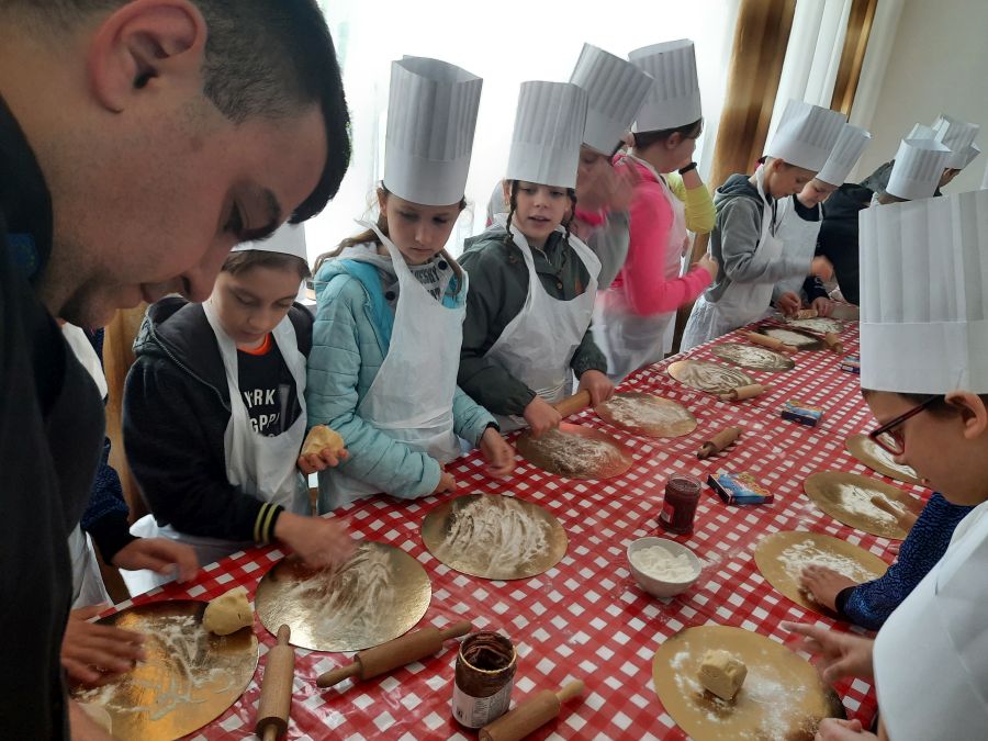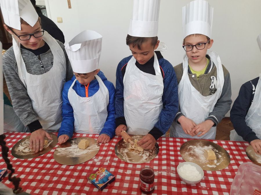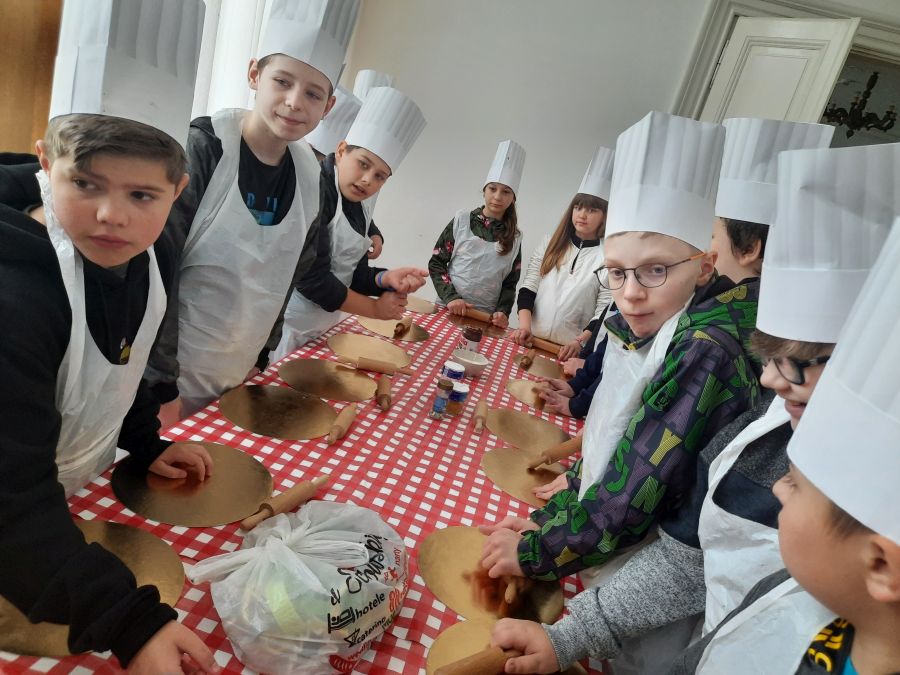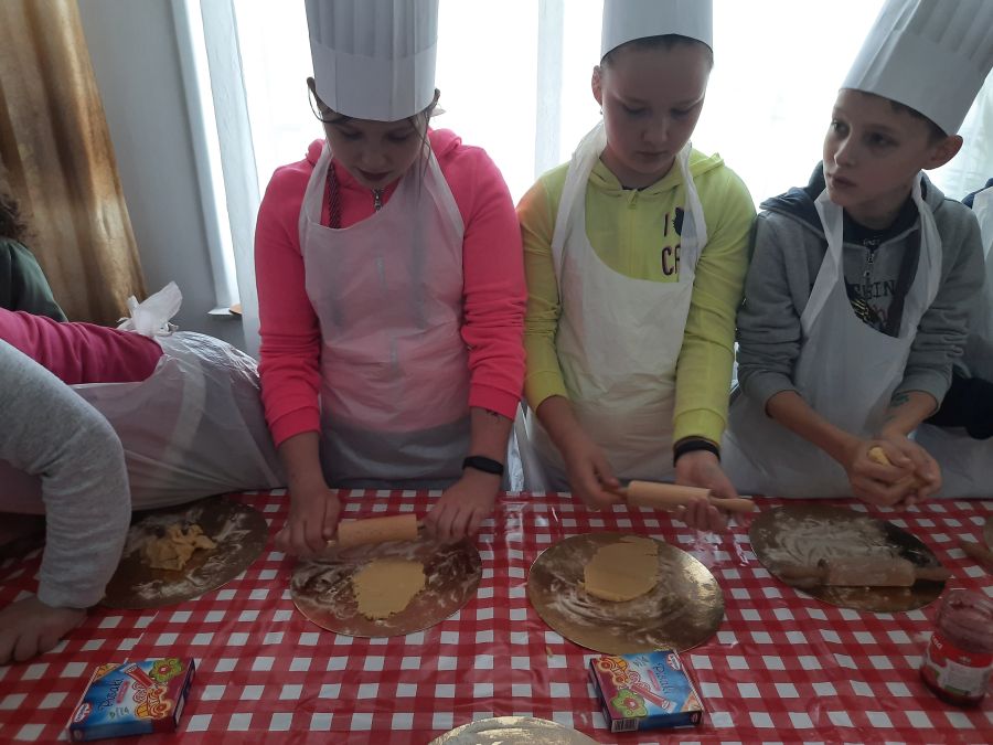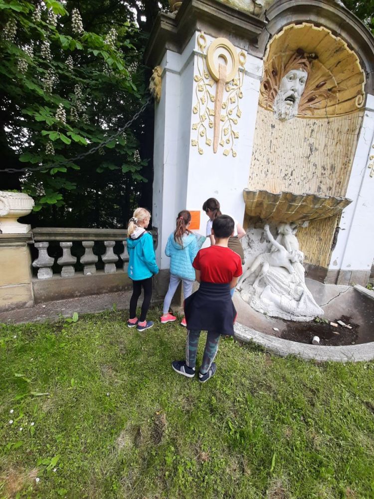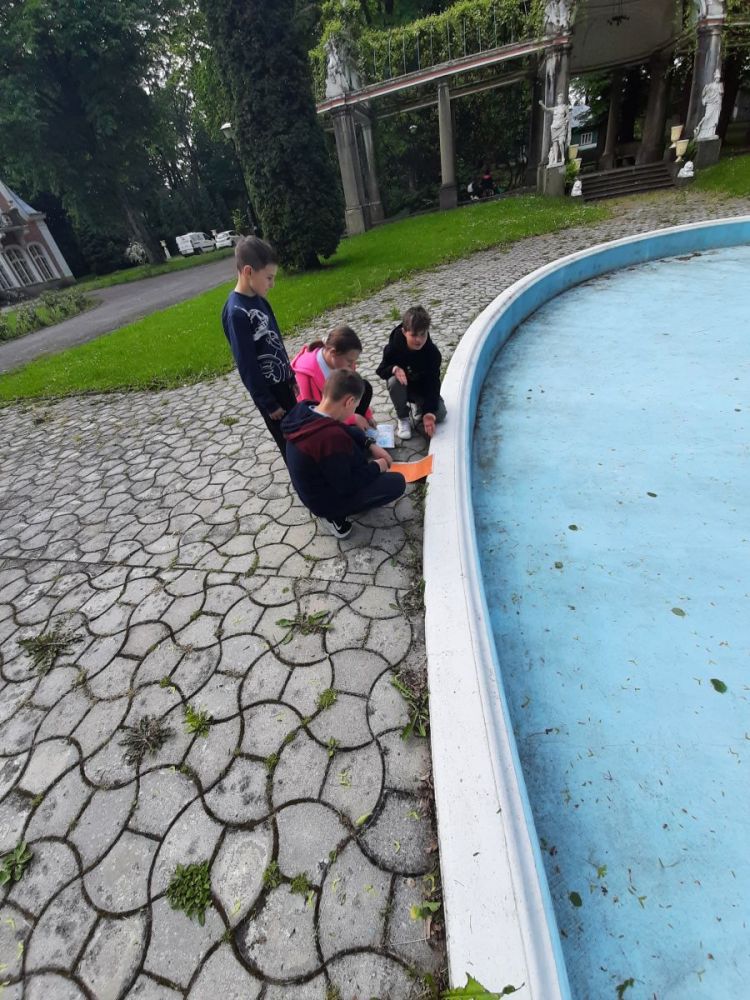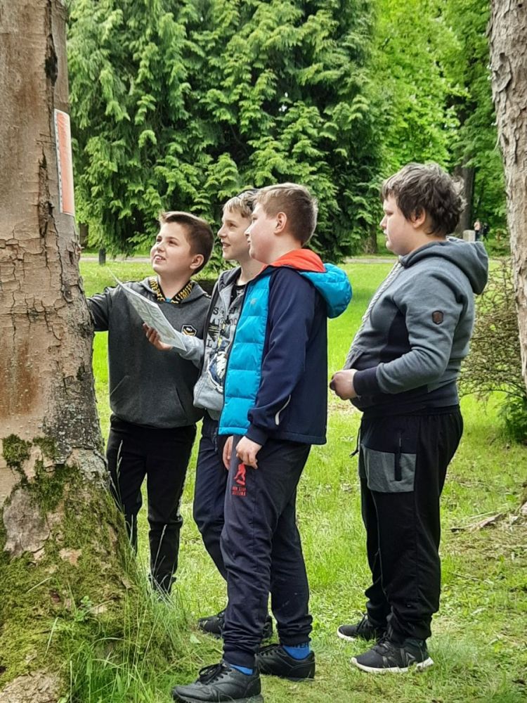 I wreszcie nadszedł ten dzień – Dzień Dziecka! Wychowawczynie klasy czwartej oraz piątej zabrały swoich podopiecznych do Pałacu w Siarach. Luksusowa rezydencja pioniera i potentata naftowego naszego regionu stała się miejscem warsztatów ciastkarskich. Każde dziecko wyposażone w fartuch i czapkę kucharską na swoim własnym stanowisku wałkowało, podsypywało i znów wałkowało bazę, aby wycinać różnorodne ciasteczka. Wypieki wróciły do autorów, którzy dekorowali z wykorzystaniem swojego kunsztu artystycznego. Były gwiazdeczki, kwiatuszki, zwierzątka, domki oraz kreatywne kształty własne. Własnoręcznie wykonane ciasteczka zachwycały kolorami, dodatkami, a przede wszystkim wyjątkowym smakiem. Następnie dzieci zwiedziły reprezentacyjne i prywatne pokoje naftowej arystokracji, podziwiały meble, wyposażenie, porcelanę, kryształowe lustra. Przekonali się jak dziś funkcjonuje obiekt. A potem… nadeszło to najbardziej zaskakujące – GRA TERENOWA. Osiem mieszanych drużyn odebrało mapę pałacowego parku i kartę zadań. Ważna była poprawność odpowiedzi, ale również liczył się czas wykonania. Zadania zaskoczyły wszystkich: szyfr, krzyżówka, hasło, trochę matematyki, trochę historii, trochę wiedzy ogólnej. Uff… nie było łatwo. Nad prawidłowym przebiegiem czuwały wychowawczynie oraz dzielna asystentka Ola. Grę ukończyli wszyscy i to z sukcesem. Pokonali trasę, rozwiązali zadania, pokonywali własne trudności, dotarli do mety. Najważniejszy cel został osiągnięty – była świetna zabawa. Kiedy dzieci kończyły zdanie: Dziś podobało mi się… , pojawiła się właściwie jedna odpowiedź: gra terenowa. Zwieńczeniem dnia było ognisko i pieczenie kiełbasek. Po ciężkim roku izolacji z ogromną przyjemnością dzieci cieszyły się własnym towarzystwem, dały upust emocjom, odnowiły pozytywne relacje, korzystały z ruchu na świeżym powietrzu. Panowała miła atmosfera i poczucie bezpieczeństwa.
