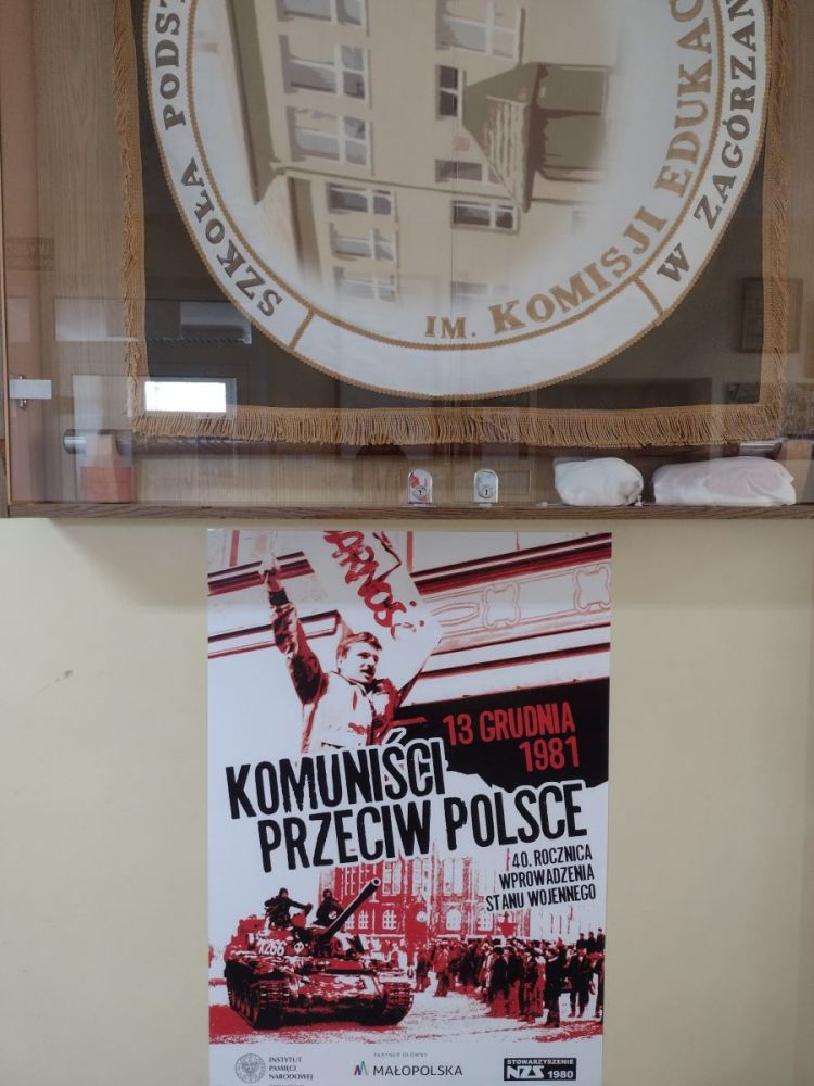 Dla uczczenia doniosłej 40. rocznicy wprowadzenia stanu wojennego nasza szkolna społeczność wzięła udział w społecznej akcji "Zapal Światło Wolności". W wielu oknach zagórzańskich domów 13 grudnia o godz. 19:30 zapłonęły rzeczywiste świece – symbol upamiętniający tych, którzy stracili życie lub w inny sposób ucierpieli w wyniku wprowadzonego 13 grudnia 1981 roku stanu wojennego. Bardzo wielu uczniów również zaangażowało się w wirtualne światełko na stronie swiatlowolnosci.ipn.gov.pl. Geneza akcji sięga do strasznej dla Polaków wojennej Wigilii Bożego Narodzenia. Do postawienia w oknach symbolicznych świateł wezwali prezydent USA Ronald Reagan oraz papież Jan Paweł II. Piękny gest współodczuwania podjęły miliony ludzi wolnego świata, aby publicznie wyrazić brak zgody na brutalizm polityki PRL. W orędziu prezydent USA wspomniał o Polakach cierpiących z powodu reżimu komunistycznego i zwrócił się do Amerykanów, mówiąc: "Niech płomień milionów świec w amerykańskich domach będzie świadectwem, że światła wolności nie uda się zgasić".