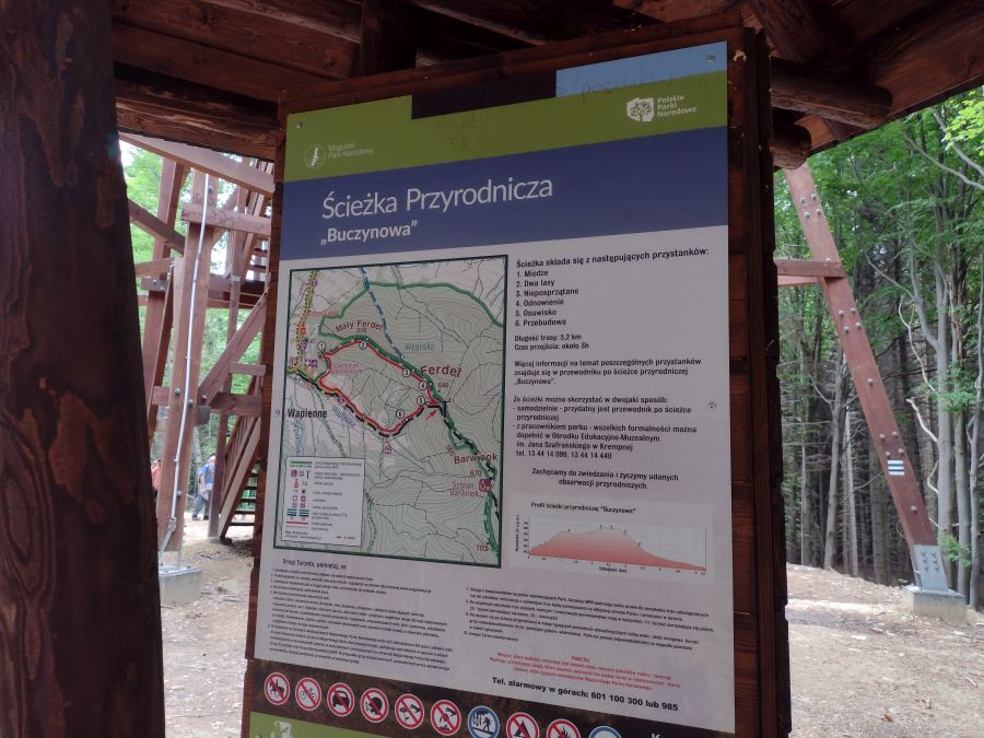 Jak zawsze 1 czerwca nastawieni turystycznie uczniowie klas trzeciej, czwartej oraz szóstej udali się w Beskid Niski. Pod troskliwą opieką nauczycieli: Joanny Nosal, Renaty Wantuch, Małgorzaty Stępień i Krystiana Szula oraz rodziców Marii Uszko i Elżbiety Wołkowicz ruszyli na zielony szlak. W Wapiennem najciekawszym szlakiem jest dość nowa (od 2019 r.) Ścieżka Przyrodnicza "Buczynowa". Leśna trasa okazała się jest mało wymagająca, więc dzielnie radzili sobie wszyscy. Króciutkie tablice edukacyjne zwracały uwagę turystów na roślinne atrakcje przyrodnicze Magurskiego Parku Narodowego. Okazało się, że poeta Jerzy Harasymowicz bukowe drzewa nazwał "srebrnymi rycerzami" Beskidu Niskiego. Wędrowcy dotarli na Mały Ferdel położony na wysokości 578 m n.p.m. Odważnie wspinali się na 25-metrową wieżę widokową, z której podziwiali rozległą panoramę lesistych wzniesień. Na dowód pobytu każdy uczestnik przybił sobie okolicznościowy stempel. Potem kiełbaska upieczona na terenie najmniejszego uzdrowiska w Polsce smakowała wyśmienicie. Zielone tereny , świeże powietrze, doskonałą pogoda, a także gry i zabawy rekreacyjne przyniosły zadowolenie wszystkim dzieciom. A przecież o to właśnie chodzi, aby korzystać różnych form aktywności ruchowej.