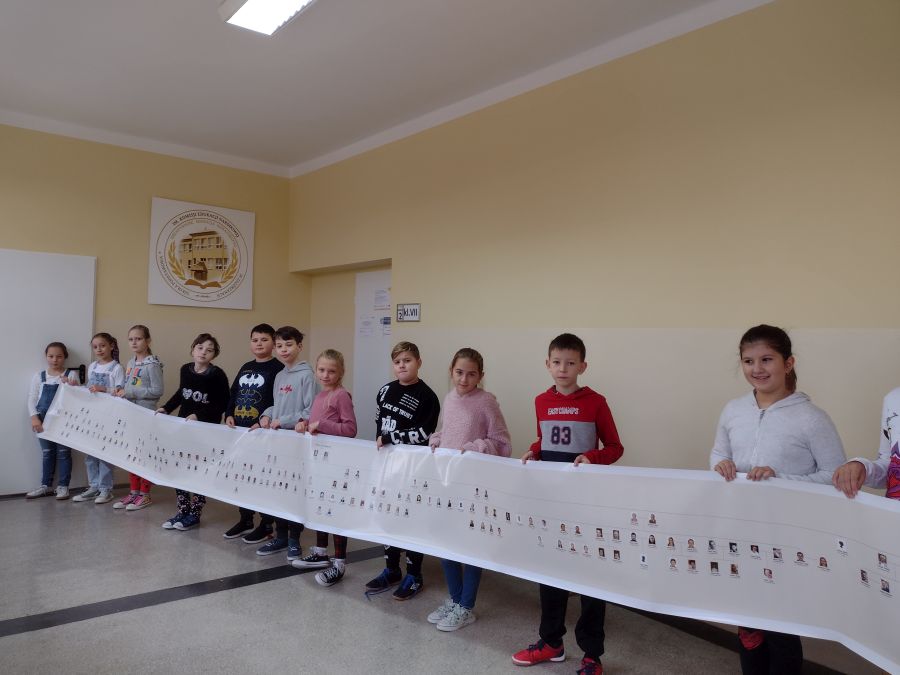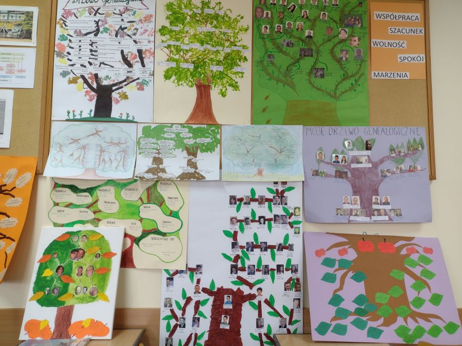 Kreatywność uczniów przejawia się w różnych sytuacjach. W klasie czwartej poznają warsztat historyka. Spodobała im się jedna z nauk pomocniczych - genealogia, nauka badająca więzi rodzinne na bazie pokrewieństwa i powinowactwa. Mali badacze otrzymali instrukcję, zbierali informacje, przeglądali zdjęcia w albumach, rozmawiali z rodzicami i dziadkami, odwiedzali cmentarze, robili notatki. Po czterech tygodniach w piątek 19 listopada zaprezentowali efekty projektu edukacyjnego "Drzewo genealogiczne mojej rodziny". Powstały wspaniałe samodzielne prace, estetyczne, kolorowe, zaplanowane tak, aby pokazać wszystkich członków rodziny. Autorzy z przejęciem opowiadali o swoich wysiłkach, podawali ciekawostki rodzinne, prezentowali kolejne pokolenia. Prace zostały wyeksponowane w sali lekcyjnej. Interesujące zwieńczenie zapewniła nam Ania Uszko, która przyniosła drzewo genealogiczne wykonane w rodzinie z okazji jubileuszu swoich dziadków. Czwartoklasiści z pasją zrealizowali pierwszy z projektów edukacyjnych. Zasłużyli na 6!