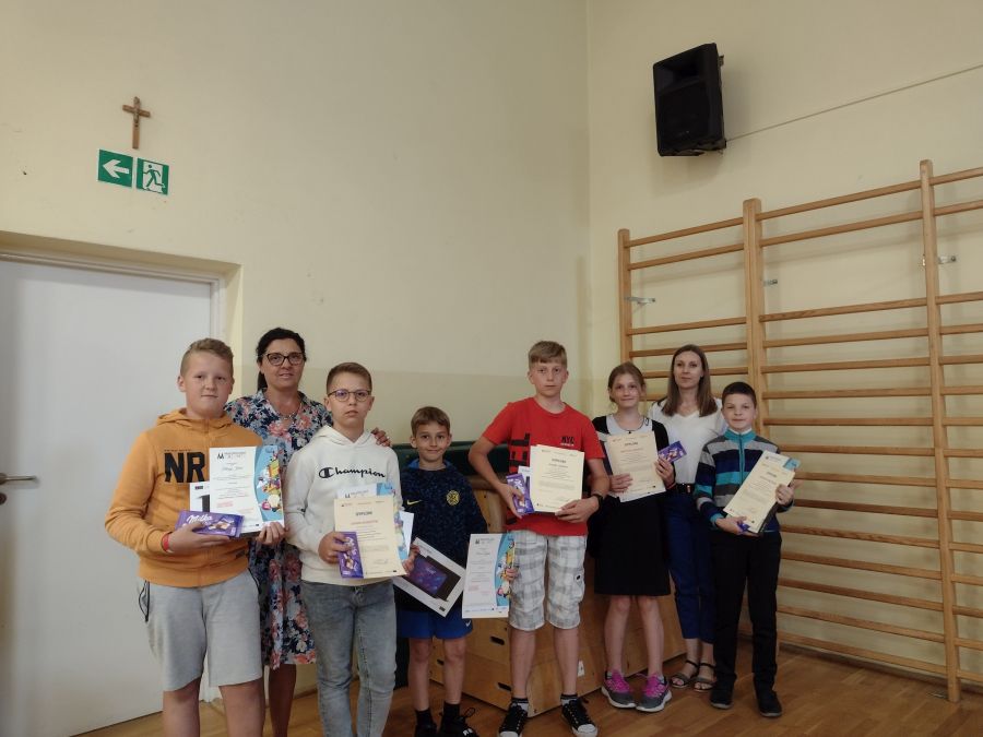 Zakończyła się piąta edycja projektu "Małopolskie Talenty". Uczniowie pracowali w ośmioosobowych grupach i pod kierunkiem nauczycieli realizowali projekty z kompetencji przedmiotowych: matematyczno-przyrodniczych, technologii informacyjno-komunikacyjnych, języka angielskiego i przedsiębiorczości. Rozwijali również kompetencje ponadprzedmiotowe. Na zakończenie każdej edycji odbywa się konkurs na projekt edukacyjny realizowany w Centrum Wsparcia Uczniów Zdolnych. Wartościowe nagrody w I etapie edukacyjnym odebrali: Jagoda Bukowska, Mateusz Bargieł, Julia Filuś i Przemysław Zając z klasy piątej oraz Beata Kamyk i Bartłomiej Wadas z klasy szóstej, w II etapie: siódmoklasiści Antoni Ciapaj, Wojciech Halik, Kacper Lenar, Adam Kurzawa, Julita Pyznar i Maja Rydarowicz oraz z klasy ósmej Gabriela Hebrajska.