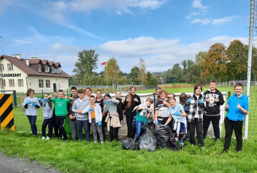 Pielęgnujemy świadomość proekologiczną i co roku aktywnie uczestniczymy w "Sprzątaniu świata". Tym razem przyświeca nam hasło "Myślę, więc nie śmiecę". W okresie 24-29 września uczniowie wszystkich klas przeprowadzili rekonesans najbliższej okolicy, jak to jest z segregacją odpadów w Zagórzanach. Pod czujnym okiem wychowawczyń E. Zasowskiej, M. Nikiel i R. Wantuch najmłodsze dzieci usuwały odpady. Działania terenowe starszych uczniów nadzorował R. Jamro. Współtworzymy 40 milionową rzeszę wolontariuszy na całym świecie. Wszyscy dbamy o wzmocnienie edukacji ekologicznej w naszej szkole, systematycznie rozwijamy postawy odpowiedzialności za środowisko naturalne.
