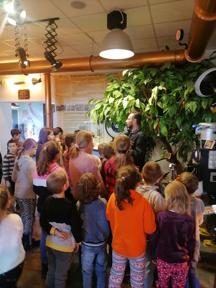 23 listopada 2021 r. uczniowie klasy I, IV i V uczestniczyli w wyjeździe edukacyjnym do Pijalni Czekolady w Korczynie koło Krosna. Nasi wychowankowie wzięli udział w niezwykłych warsztatach prowadzonych przez mistrza cukiernictwa, właściciela firmy – pana M. Pelczara. W tym magicznym miejscu, utrzymanym w stylu starej fabryki czekolady, uczniowie ujrzeli egzotyczne drzewo kakaowca, poznali schemat procesu produkcji czekolady, dowiedzieli się, skąd pochodzą różne odmiany ziarna używane do produkcji w korczyńskiej fabryce. Podczas prelekcji uczestnicy mogli wielokrotnie degustować różne rodzaje czekolady.