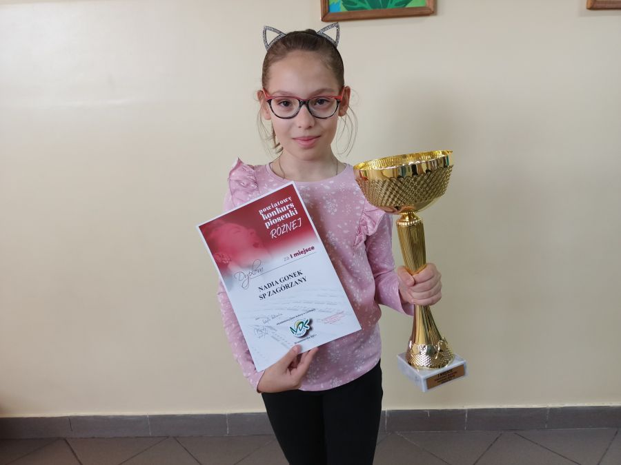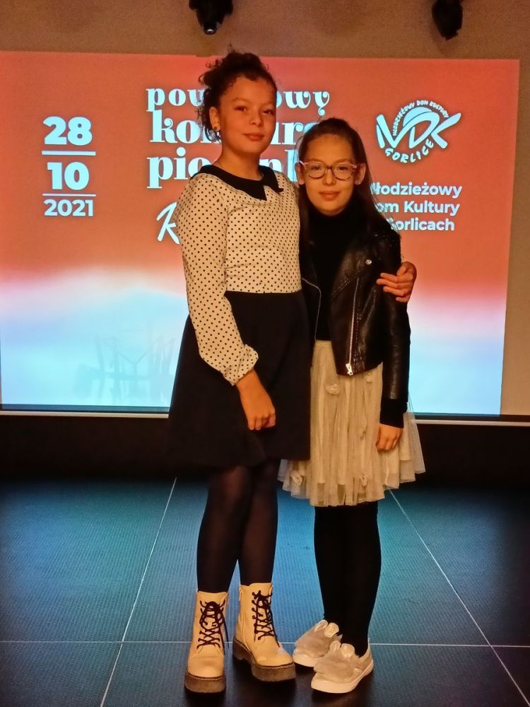 Naszą szkołę reprezentowały w kategorii II (10 – 12 lat) – Nadia Gonek z klasy IV oraz Natalia Halik z klasy V. Uczennice zaprezentowały się bardzo dobrze, a Nadia zdobyła I miejsce. To duży sukces dla naszej uczennicy, która zaczyna swoją przygodę ze śpiewem.