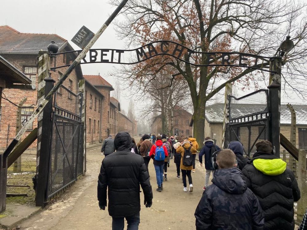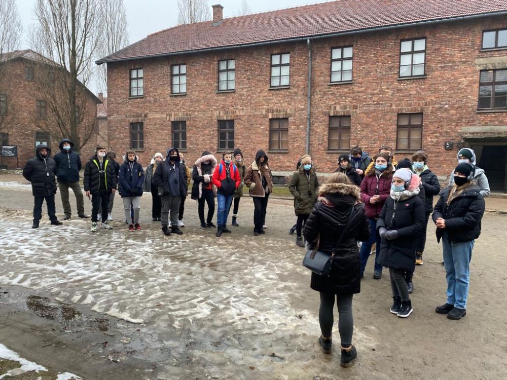 Mając na uwadze ogromne znacznie tych wydarzeń dla współczesnych pokoleń, w dniu 15 grudnia br. o 5:45 razem z Panią Dyrektor dr Iwoną Jamro wybraliśmy się z klasą VIII i kilkoma osobami z klasy VII do Oświęcimia, aby młodzież mogła na własne oczy przekonać się i zobaczyć, jaki los potrafił zgotować człowiek, drugiemu człowiekowi. Najpierw przez dwie godziny zwiedzaliśmy I obóz Auschwitz-Birkenau. Razem z panią przewodnik przemierzaliśmy drogę, jaką musieli przejść ci, którzy dostali się do obozu. Bardzo rzeczowe i kompetentne zaprezentowanie historii tego miejsca sprawiło, że młodzież z uwagą, przejęciem