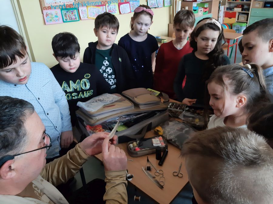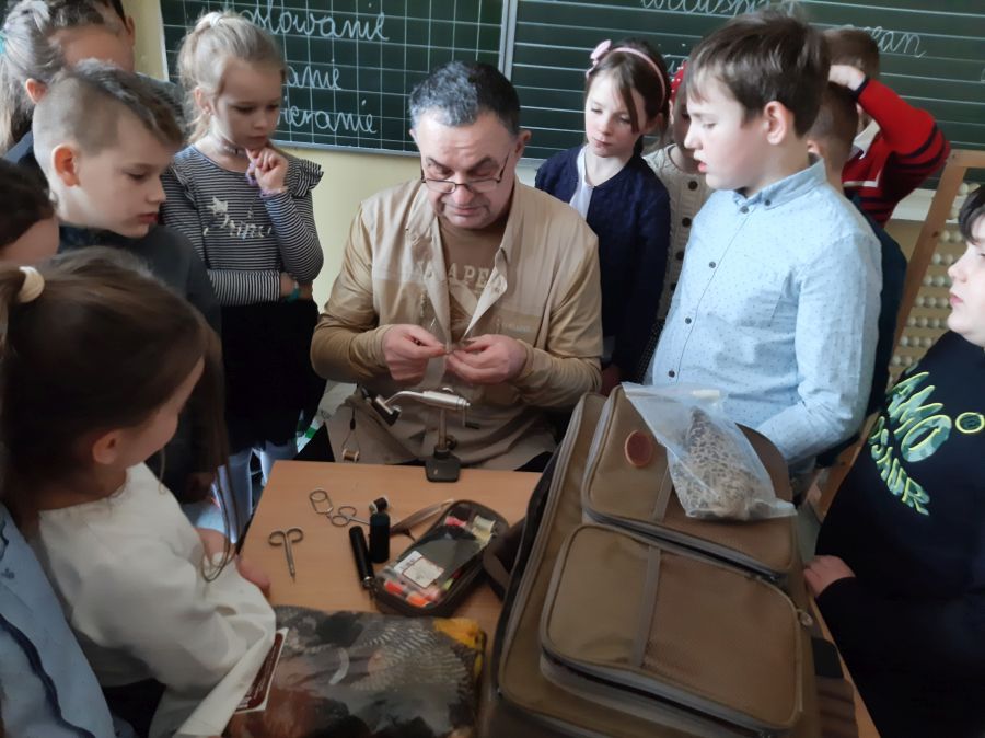 8 marca 2022 r. w klasie II odbyło się niezwykłe spotkanie. W związku z omawianą tematyką zajęć "Od źródła do morza" odwiedził nas dziadek jednej z uczennic, pan Antoni Bogdan, właściciel firmy AB-Fly produkującej sztuczne muchy, streamery, nimfy.