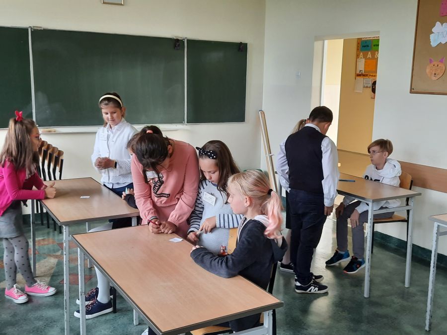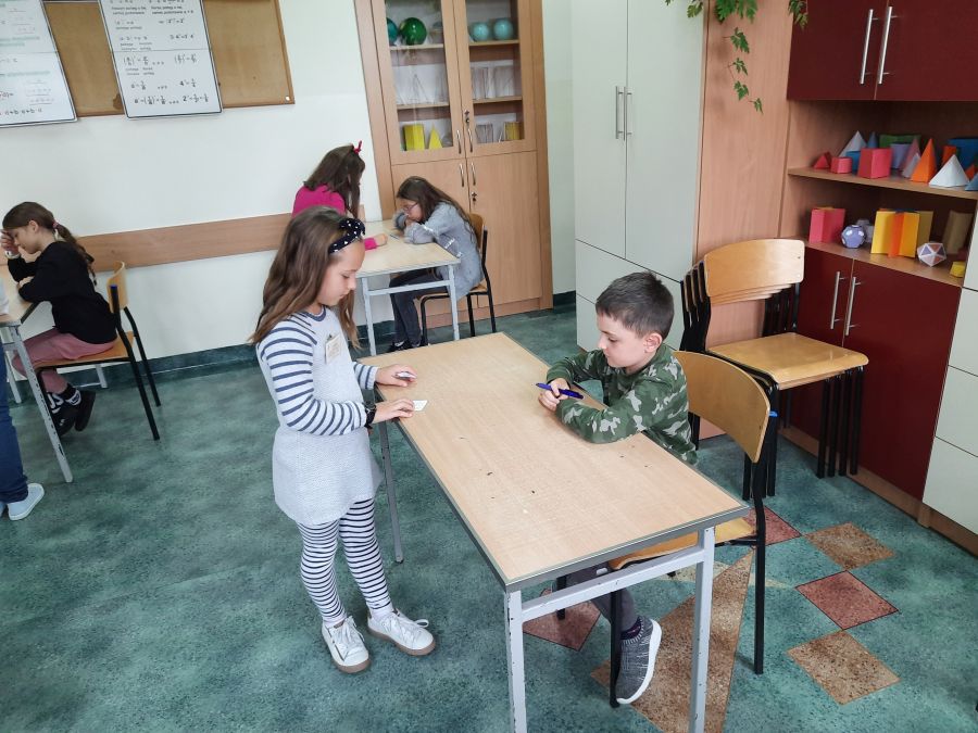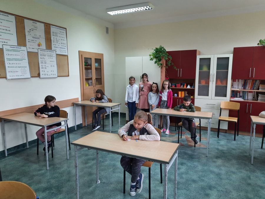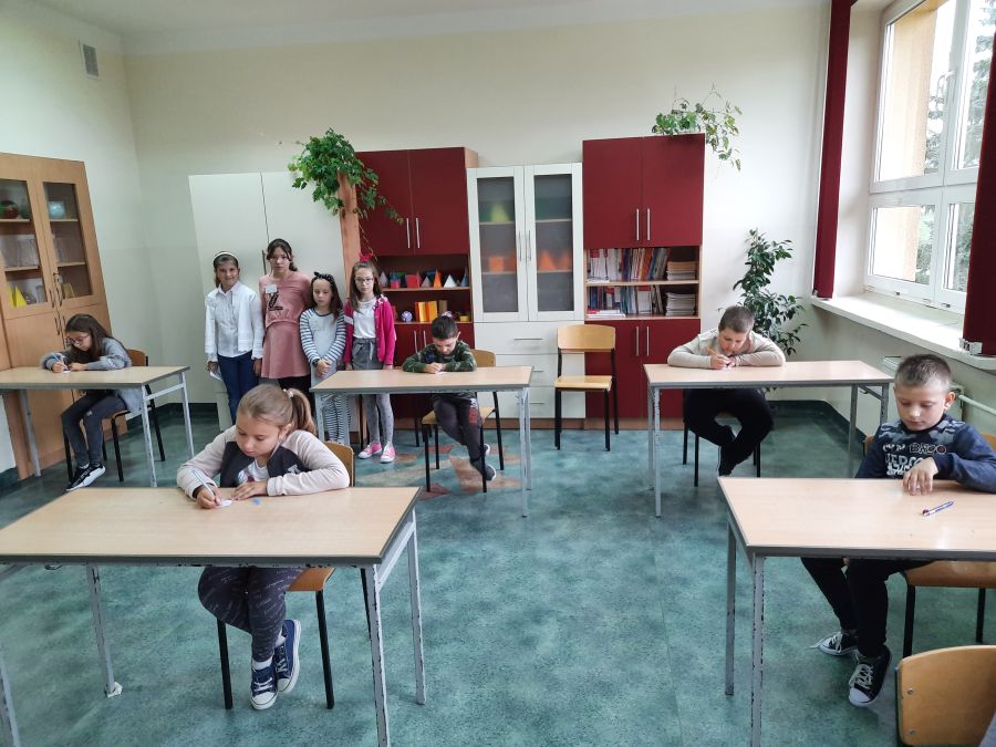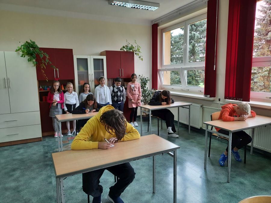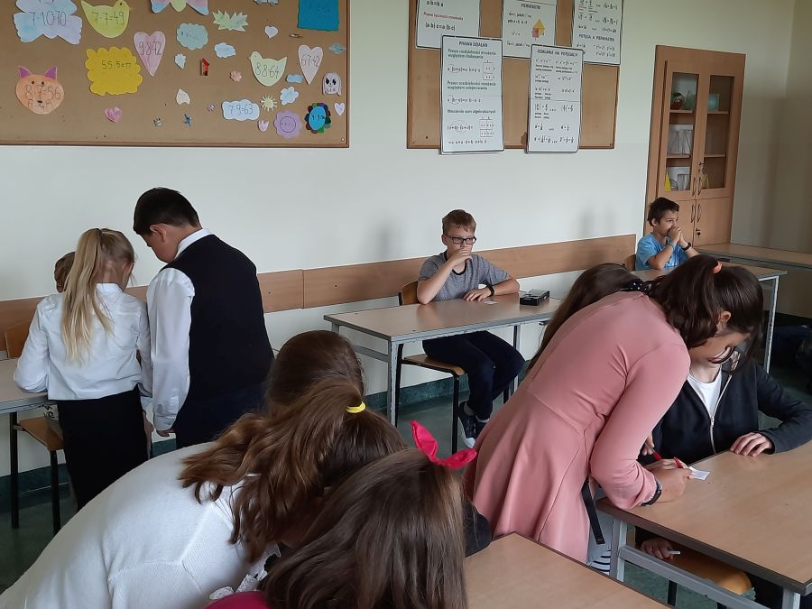 Czwartoklasiści byli niezwykle zmotywowani pełnieniem ważnej funkcji egzaminatora. Wszystko odbywało się pod okiem matematyczek – Barbary Kudławiec i Anety Motyki, które czuwały nad poprawnością przeprowadzanych egzaminów.