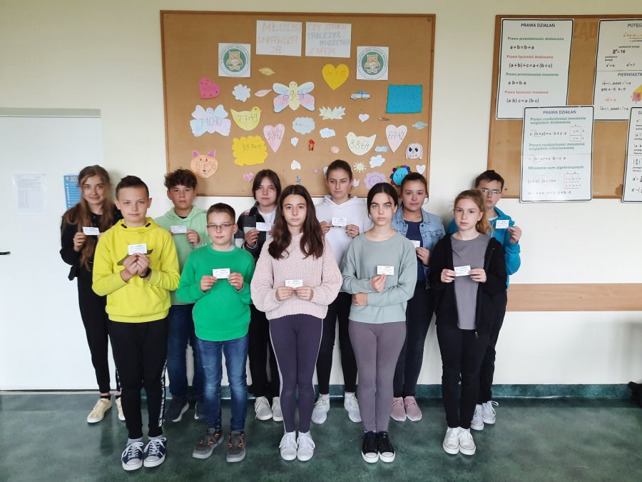 Klasa VIII: Wiktoria Dutka, Gabriela Hebrajska, Oliwia Kamińska, Weronika Kuk, Milena Maniak, Mikołaj Pyrcioch, Piotr Ryba, Julia Środulska, Bartosz Woźniak.