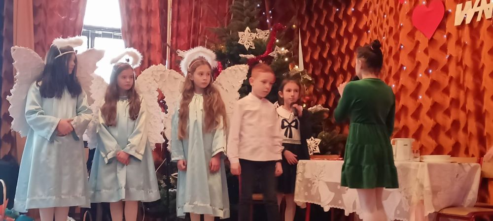 Na scenie przeistoczonej w szopkę betlejemską uczniowie zaprezentowali jasełka. Wspomnieli również, że Pan Jezus też miał dziadków, którzy bardzo go kochali, jednak nie mogli o tym opowiadać. W drugiej części uroczystości goście wysłuchali czułych słów kierowanych pod ich adresem, obejrzeli humorystyczny skecz i taniec. Mali artyści z przejęciem prezentowali swoje umiejętności teatralne i muzyczne. Goście ze wzruszeniem odbierali czułe słowa kierowane pod ich adresem, a duma z utalentowanych wnucząt rozpierała ich serca.