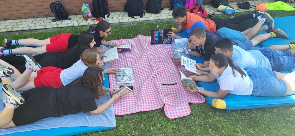 Czwartek 1 czerwca był szałowy! Szkolny dzień wypełnił bogaty program: od rana Zagórzański Złaz, potem uroczyste podsumowanie konkursu czytelniczego i wręczanie nagród zwycięzcom. Słoneczna aura, zielona trawka, kocyki, poduszki, leżaczki i odbyło się "Czytanie na polanie". Kuchnia zaserwowała pieczone kiełbaski, surówki i chrupiące bułeczki. Rodzice częstowali pyszniutkimi mufinkami. Absolutną niespodzianką okazały się stoiska artystycznego malowania twarzy i zaplatania kolorowych warkoczyków. Sportowi zapaleńcy zagrali mecz. Na koniec ósmoklasiści przeprowadzili "Familiadę". Dzieci nie chciały opuścić szkoły, czyli wszyscy bawili się znakomicie. Było kolorowo, szałowo i wesoło.