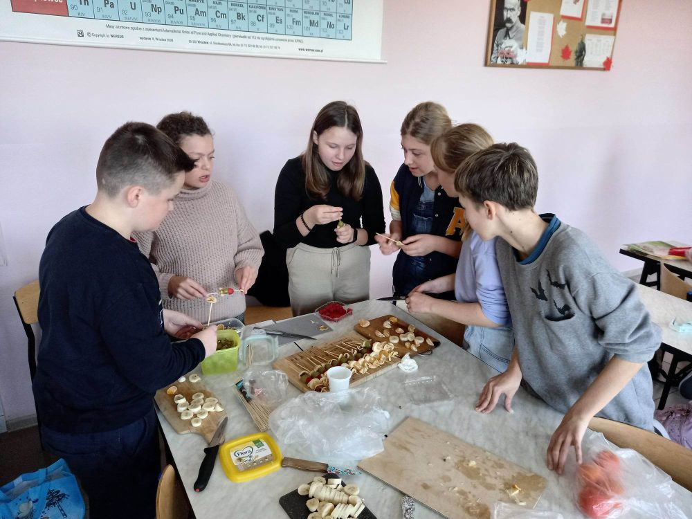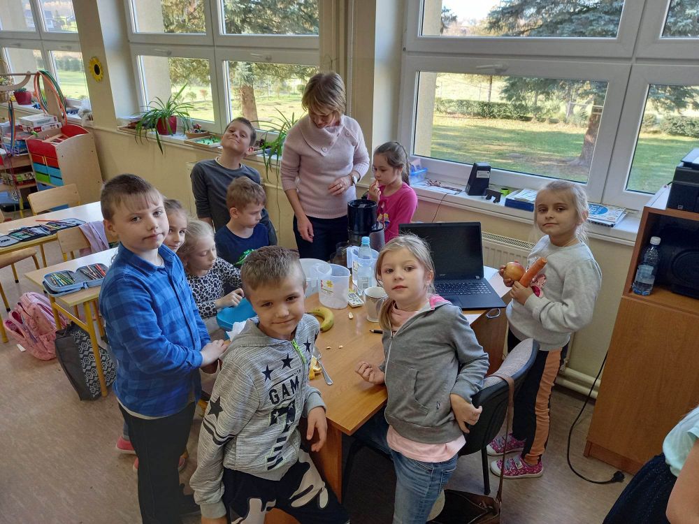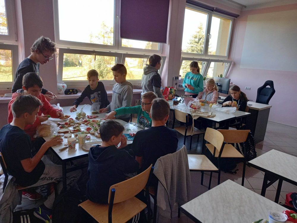 Europejskiego Dnia Zdrowego Jedzenia i Gotowania nie sposób świętować inaczej, jak tylko przygotowując i konsumując zdrowy posiłek. 8. listopada uczniowie klas I, IV-VIII własnoręcznie przygotowali drugie śniadanie. W menu pojawiły się m.in. kanapeczki, koreczki, tortille, naleśniki, sałatki owocowe, jogurty, lemoniada oraz świeżo wyciśnięte soki z owoców. Chociaż było przy tym trochę bałaganu, młodzi kucharze spisali się na medal.