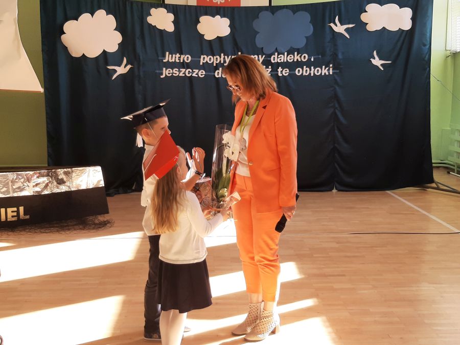 18 października 2022 r. odbyła się w naszej szkole uroczystość pasowania na ucznia. Jest to szczególny dzień, który na długo pozostanie w pamięci każdego ucznia klasy pierwszej. W tym dniu dzieci oficjalnie przyjęte zostały do grona uczniów szkoły. Podczas uroczystości pierwszoklasiści zaprezentowali się w programie artystycznym ,,Fantastyczna podróż". Z wielkim zaangażowaniem recytowali wiersze, śpiewali piosenki i tańczyli, zaprezentowali wiedzę i umiejętności, które zdobyli w pierwszym miesiącu nauki w szkole. Najważniejszą częścią uroczystości, na którą wszyscy czekali było ślubowanie oraz pasowanie na ucznia Szkoły Podstawowej im. Komisji Edukacji Narodowej w Zagórzanach. Uroczystego aktu pasowania dokonała p. dyr. Iwona Jamro. Uczniom zostały wręczone legitymacje szkolne, dyplomy pasowania, birety uczniowskie i upominki przygotowane przez rodziców. Wszystkim pierwszoklasistom w tak ważnym dla nich dniu życzymy wielu sukcesów na nowej drodze obowiązków szkolnych.