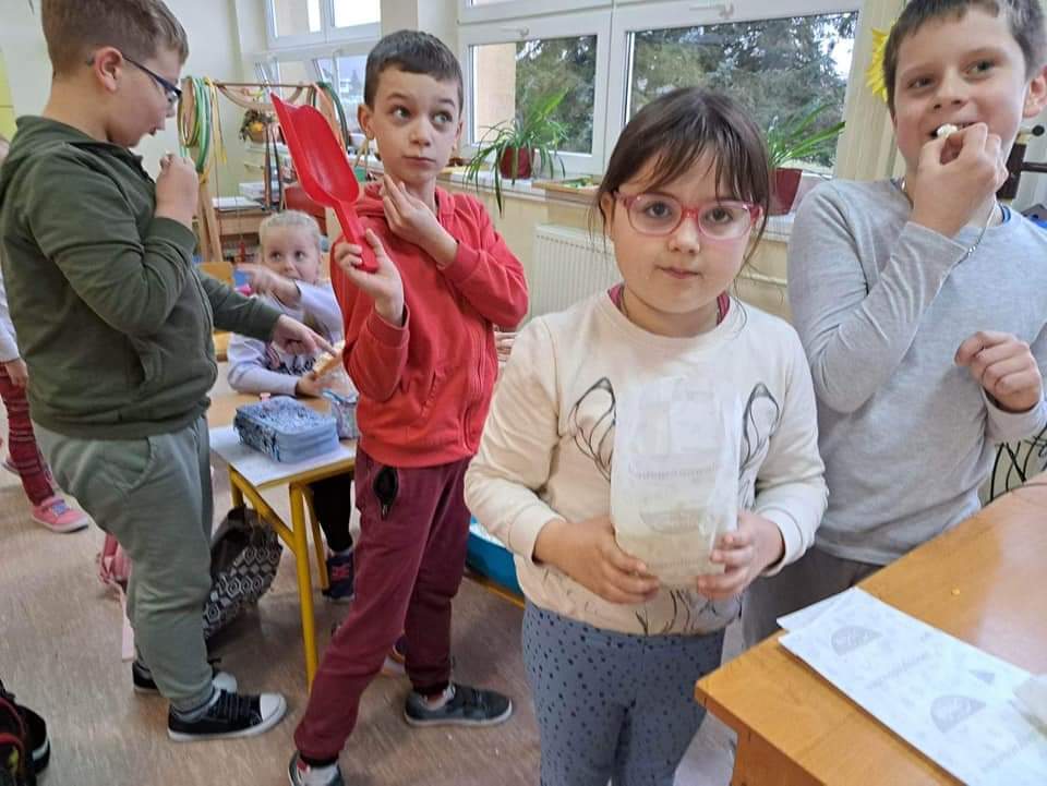Klasa I zorganizowała w szkole zbiórkę funduszy, karmy, środków czystości i zabawek na rzecz zwierząt z fundacji "PSYstań" w Gorlicach. Pierwszoklasiści przeprowadzili w dniu 24 listopada sprzedaż popcornu w szkole, z której udało się zebrać niemałą kwotę 627 złotych. Pozostali uczniowie chętnie włączyli się w akcję zbierania karmy i zabawek dla bezdomnych zwierząt. Zebrane fundusze i środki materialne przekazaliśmy prezes fundacji, pani Katarzynie Kosińskiej, która przybyła do szkoły 13 grudnia wraz ze swoją podopieczną, kotką ,,Dożynką". Podczas spotkania z panią Kasią uczniowie dowiedzieli się, w jaki sposób karmić zwierzęta domowe i te dziko żyjące. Otrzymali również informacje, jakie warunki trzeba spełnić, aby adoptować zwierzę z fundacji. Największą radość sprawiła dzieciom możliwość pomocy naszym ,,braciom mniejszym". Dziękujemy wszystkim, którzy tak ochoczo włączyli się w akcję.