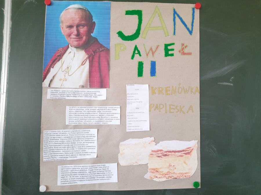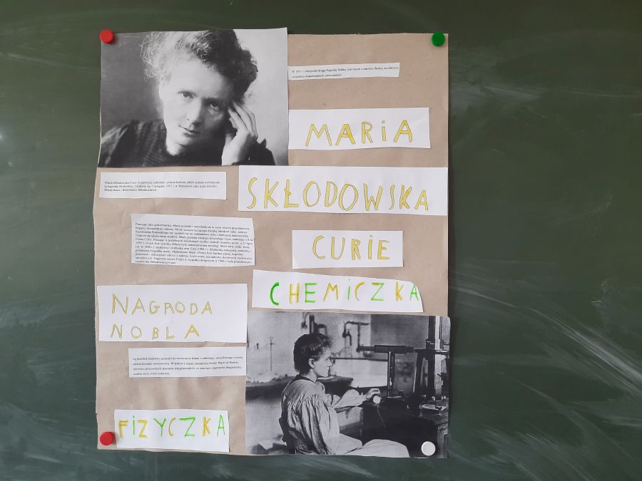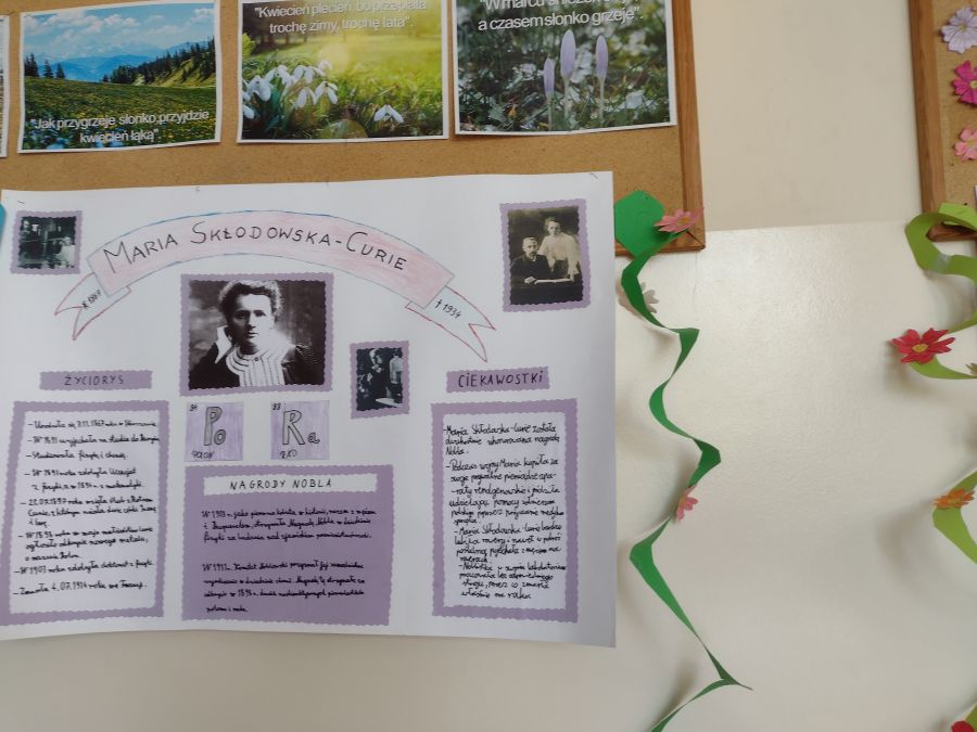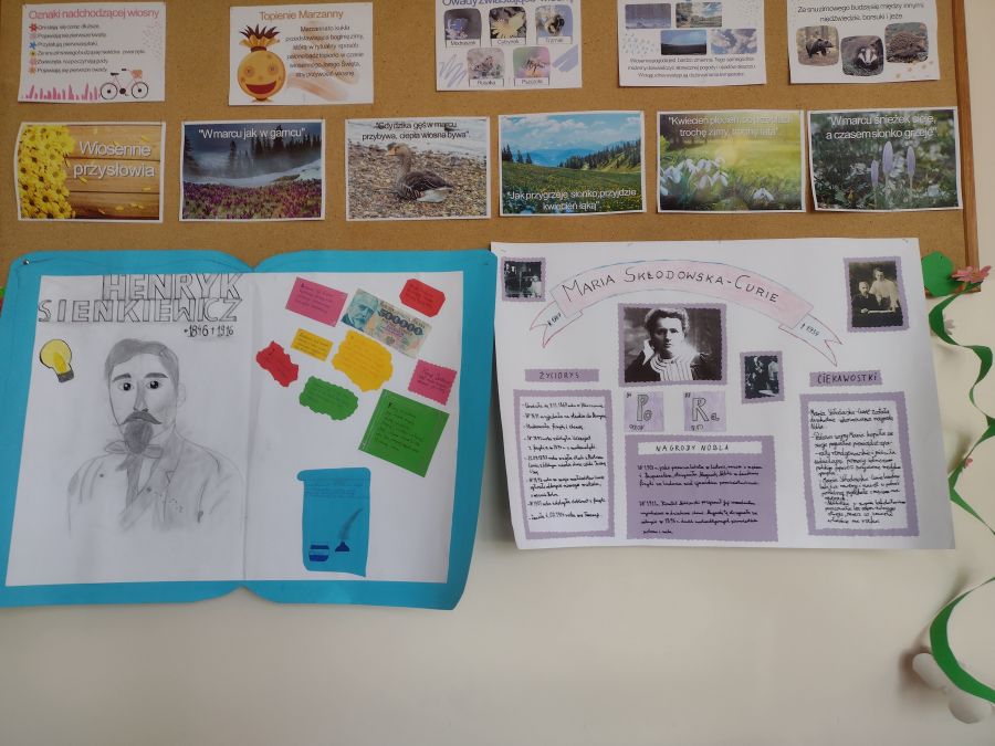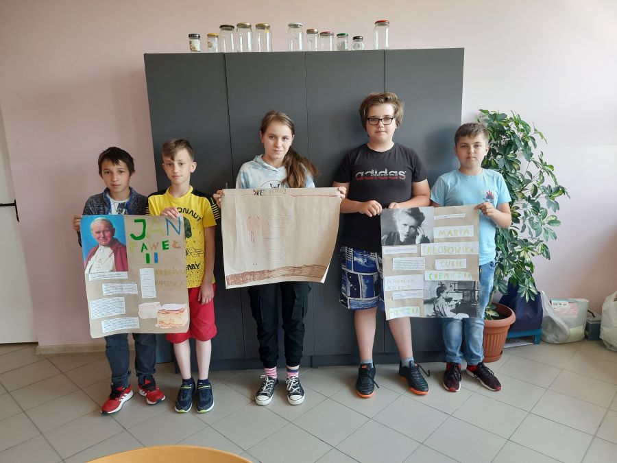 Uczniowie klasy czwartej na lekcji historii otrzymali zadanie zaprezentowania sylwetek Polaków, którzy zostali laureatami Nagrody Nobla Natomiast szóstoklasiści na zajęciach z wychowawcą opracowali tematyczne plakaty, prezentujące sukcesy rodaków: Wandy Rutkiewicz, Ignacego Łukasiewicza, Aleksandra Skrzyńskiego, Jana Pawła II czy Marii Skłodowskiej-Curie. Klasa siódma prezentowała dokonania polskich artystów i uczonych przełomu wieków XIX i XX. Wszyscy znakomicie wywiązali się z wyzwań małego projektu edukacyjnego. Entuzjastycznie zrealizowali cele, a każda z grup pokazała rezultaty własnej pracy.