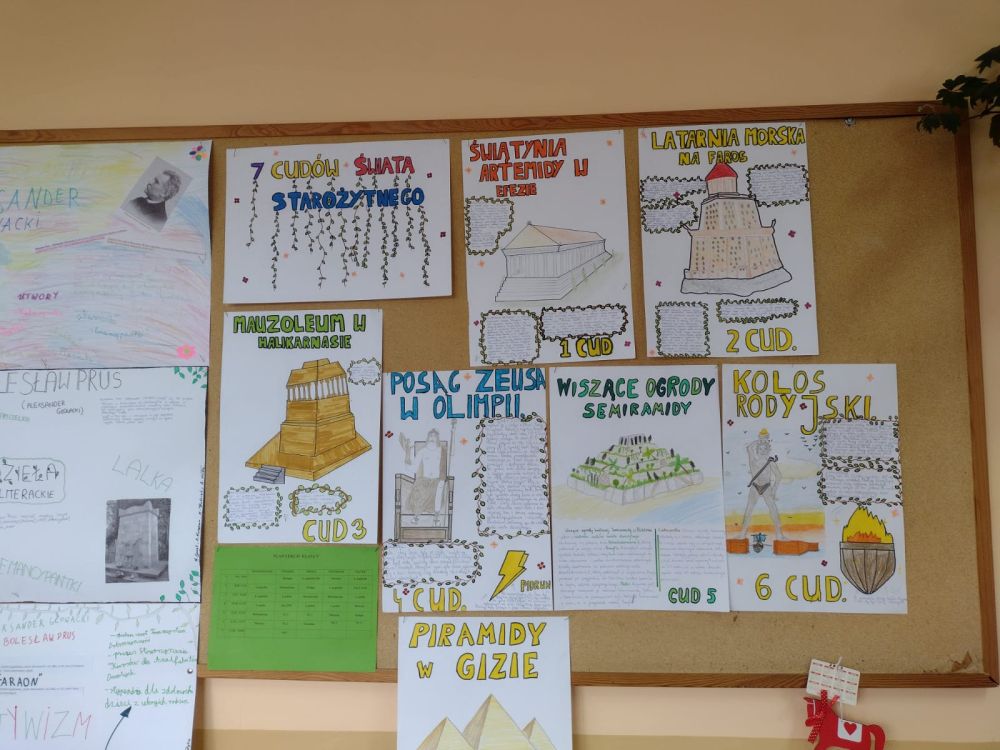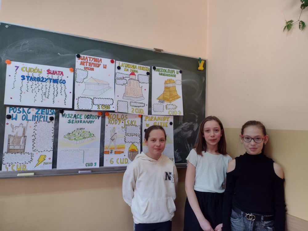 Uczniowie klasy piątek zainspirowani tematyką lekcji przedmiotowych w marcu podjęli pracę w projektach edukacyjnych. Pracowali w małych grupach wokół wybranego tematu. Niektórzy w prezentacji "Bogowie Grecji i Rzymu są wokół nas …" sprawdzili, które imiona na stałe wpisały się w kulturę polską, czyli poszukiwali śladów starożytnych bogów we współczesności. Inni przedstawili "Siedem cudów świata" lub "Siedem cudów Ziemi Gorlickiej", wzorując się na cudach architektury świata antycznego.