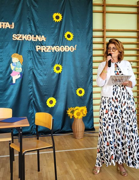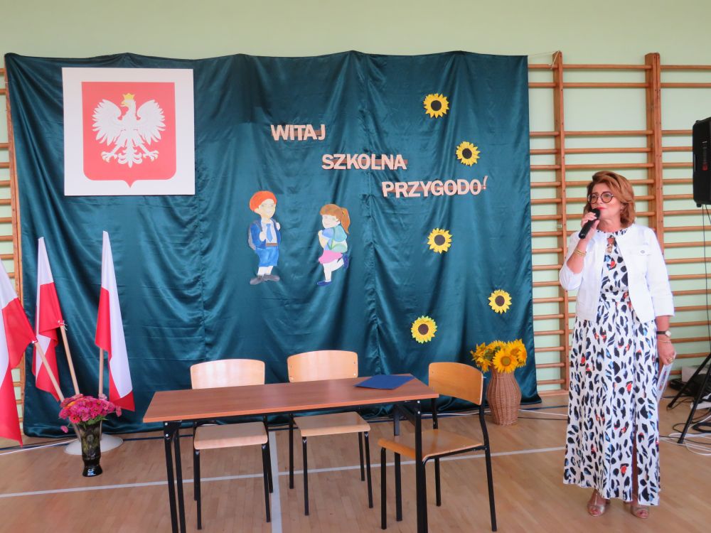 W swoim wystąpieniu powitalnym Pani Dyrektor nawiązując do słów W. Petersona, przekazała informacje o sukcesach egzaminu ósmoklasisty. Następnie wręczyła nagrodę jubileuszową pani Małgorzacie Augustyn-Nowak. Pan Krystian Szul poprowadzi zajęcia wychowania fizycznego, a pani Katarzyna Ciapaj obejmuje obowiązki pedagoga szkolnego, psychologa i pedagoga specjalnego. Dr Iwona Jamro nakreśliła ramy organizacyjne nowego roku, warunki funkcjonowania świetlicy i stołówki. Wskazała na programy i projekty, które będą kontynuowane w nowym roku szkolnym: "Laboratoria Przyszłości", Narodowy Program Czytelnictwa, "Poznaj Polskę" oraz "Edukacja w Szkołach Prowadzących Kształcenie Ogólne na Terenie Ziemi Gorlickiej". W zagórzańskiej szkole widoczne są już efekty w ramach "Dostępnej szkoły". Pani Dyrektor do zgromadzonych zwróciła się słowami "Niech rok 2022/2023 będzie kolejną drogą do osiągnięcia szczytu rozwoju dla Was uczniowie i dla nas dorosłych. Skupmy wszystkie siły na tym, co chcemy osiągnąć, a sukces będzie odnotowany."