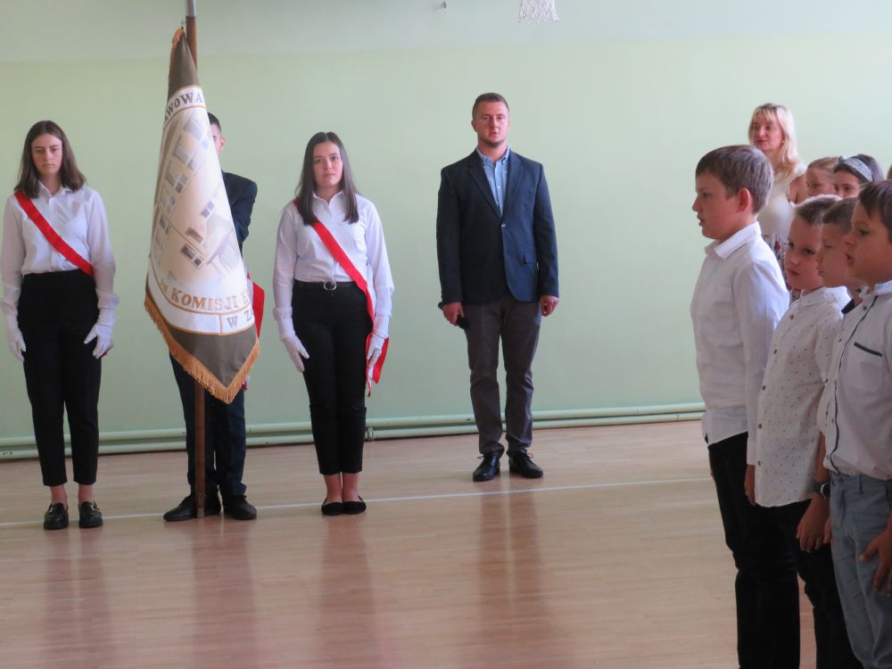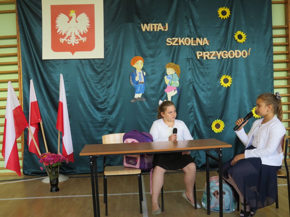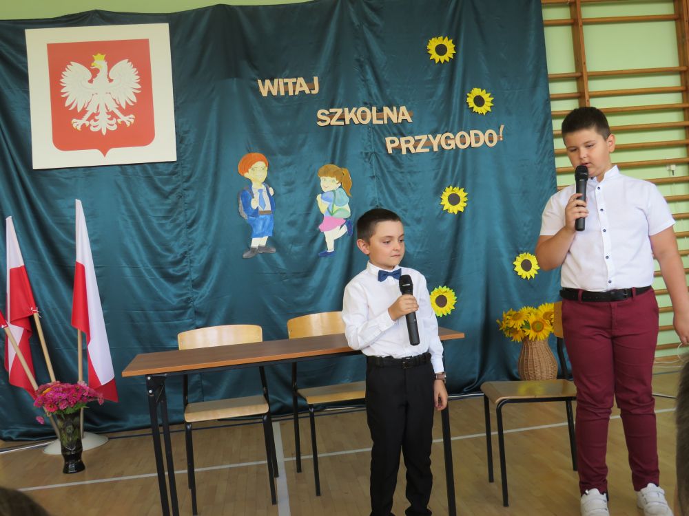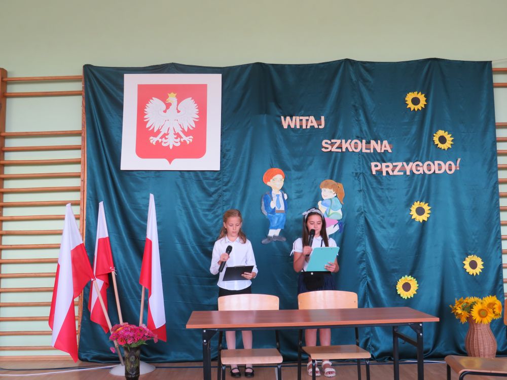 Zgodnie z ceremoniałem w obecności sztandaru szkolna społeczność odśpiewała hymn państwowy. Uczniowie klasy czwartej przygotowani przez Krystynę Holik i Renatę Wantuch zaprezentowali inscenizację "Witaj, szkolna przygodo!" Minutą ciszy uczczono ofiary drugiej wojny światowej.