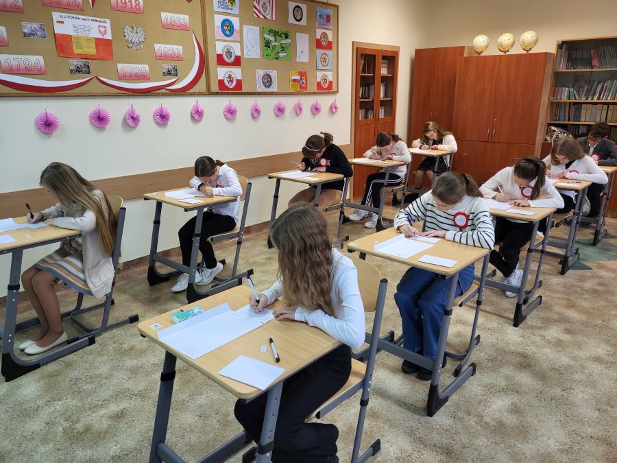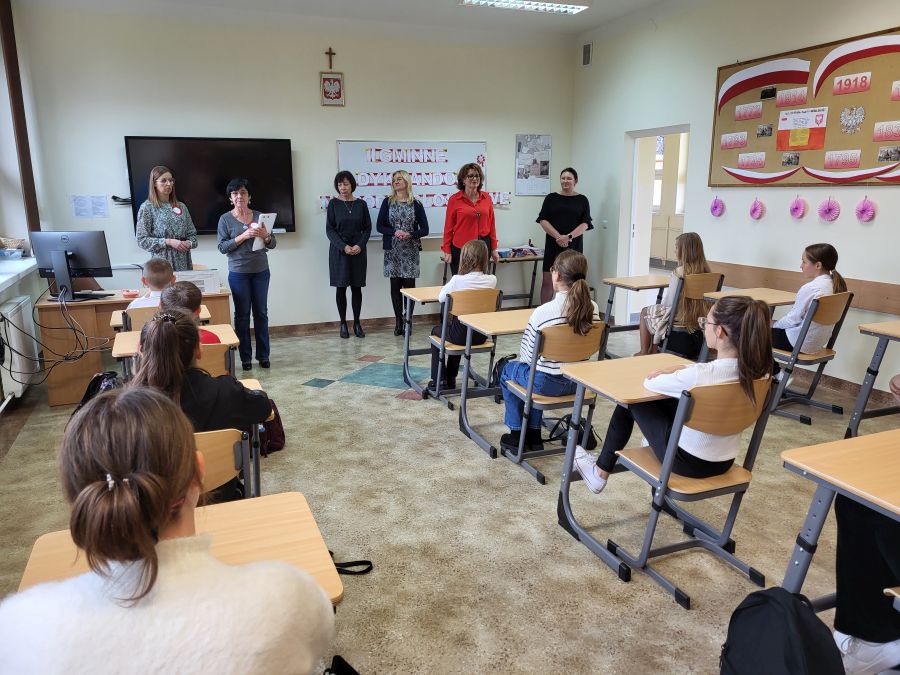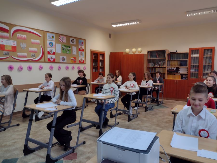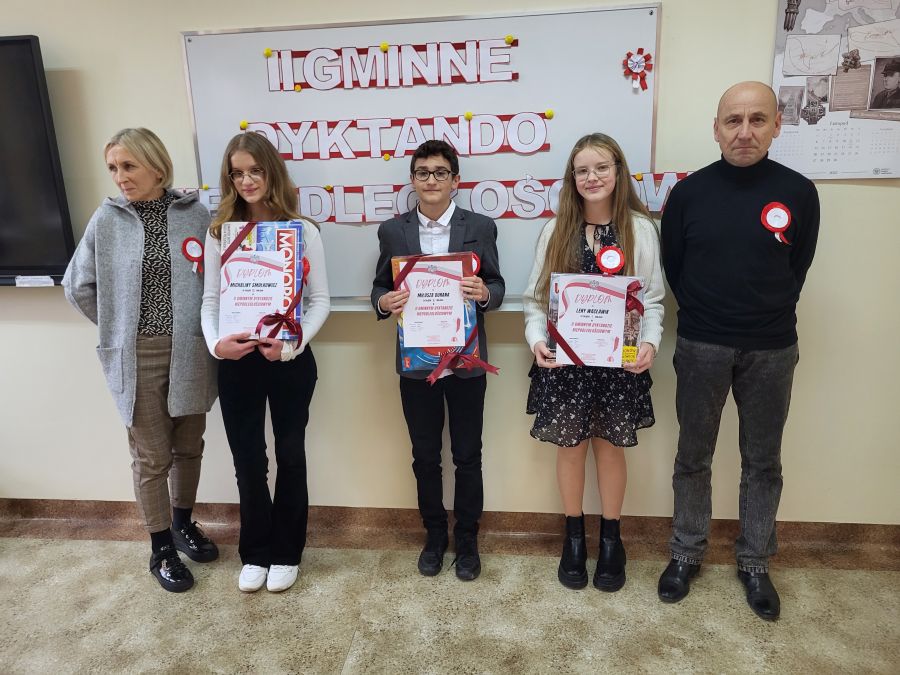 Mamy jesień bogatą w wydarzenia. We czwartek 16 listopada odbyło się II Gminne Dyktando Niepodległościowe "Wybiła godzina!" Gościliśmy piętnaścioro uczniów z klas 4-6, którzy sprawdzili swoje praktyczne umiejętności poprawnej pisowni. Dyktowany tekst nawiązywał do zagadnień sprzed 105 lat z mocnym zaakcentowaniem bitwy pod Gorlicami i roli księdza Bronisława Świeykowskiego. Laureatami zostali: Lena Wacławik (Kwiatonowice) - I miejsce, Miłosz Duran (Klęczany) - II miejsce oraz Michalina Smołkowicz (Ropica Polska) - III miejsce. Dyplomy i nagrody rzeczowe wręczyła dyrektor szkoły Iwona Jamro. W Szkole Podstawowej im. Komisji Edukacji Narodowej w Zagórzanach dbałość o piękno poprawnego języka polskiego stanowi integralną część wychowania obywatelsko-patriotycznego. Wydarzenie przygotował zespół: Joanna Cieśla, Aneta Motyka I Małgorzata Stępień. Prace uczniów oceniała komisja konkursowa w składzie: Małgorzata Stępień, Katarzyna Ciapaj, Krystyna Holik i Barbara Kudławiec. Gratulujemy wyników. Dziękujemy za efektywną współpracę.