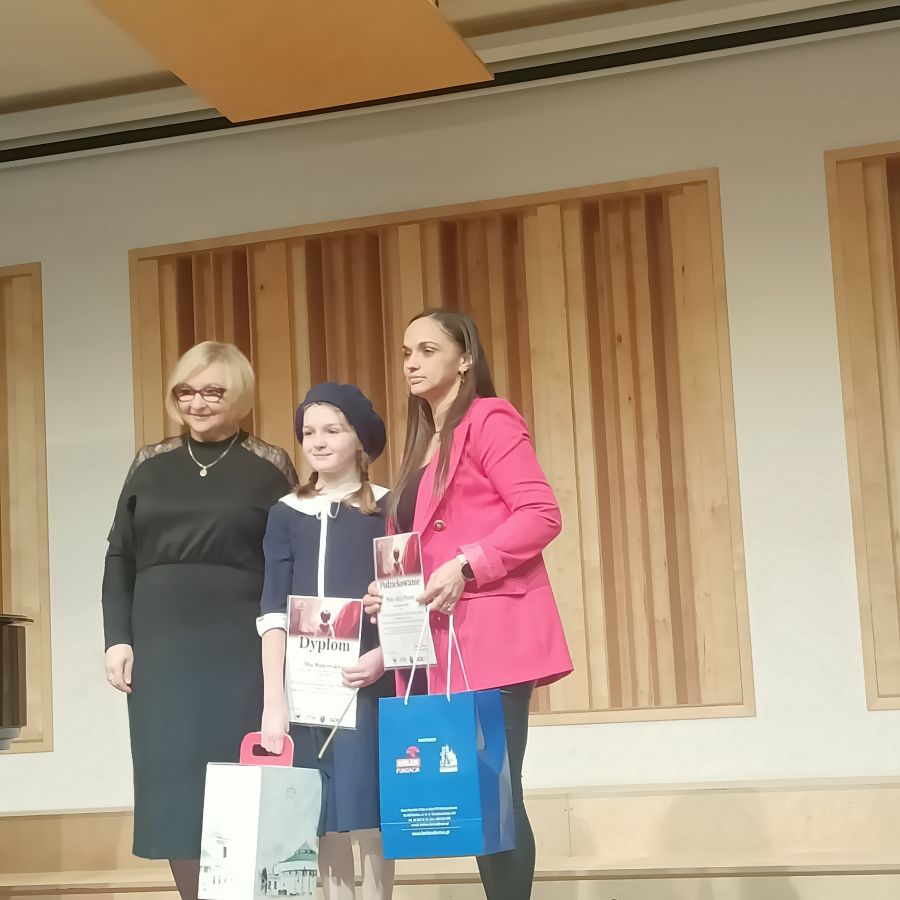 Konkurs odbywał się w dwóch kategoriach , solistów i zespołów. Naszą szkołę reprezentowały w kategorii I klasy I – V: Maja Bukowska kl. IV natomiast w kategorii II klasy VI – VIII: Nadia Gonek z kl. VI. Dziewczynki zaprezentowały się znakomicie. Jesteśmy ogromnie dumni z występu naszych uczennic i serdecznie gratulujemy> Jest to bardzo wymagający konkurs, uczniowie muszą nauczyć się 6 utworów obowiązkowych, które losują podczas występu oraz prezentują utwór przygotowany przez siebie.