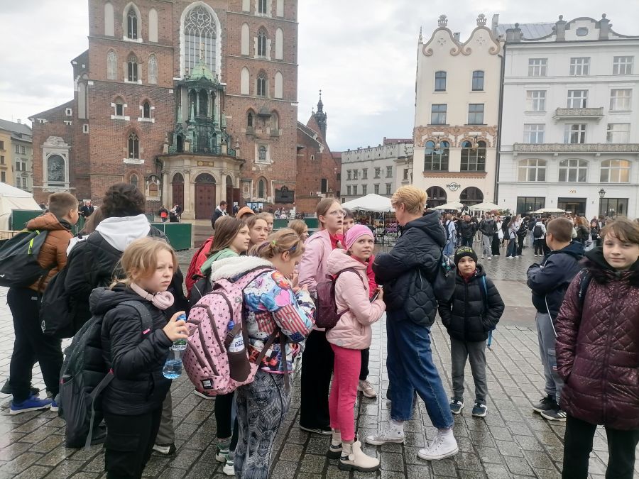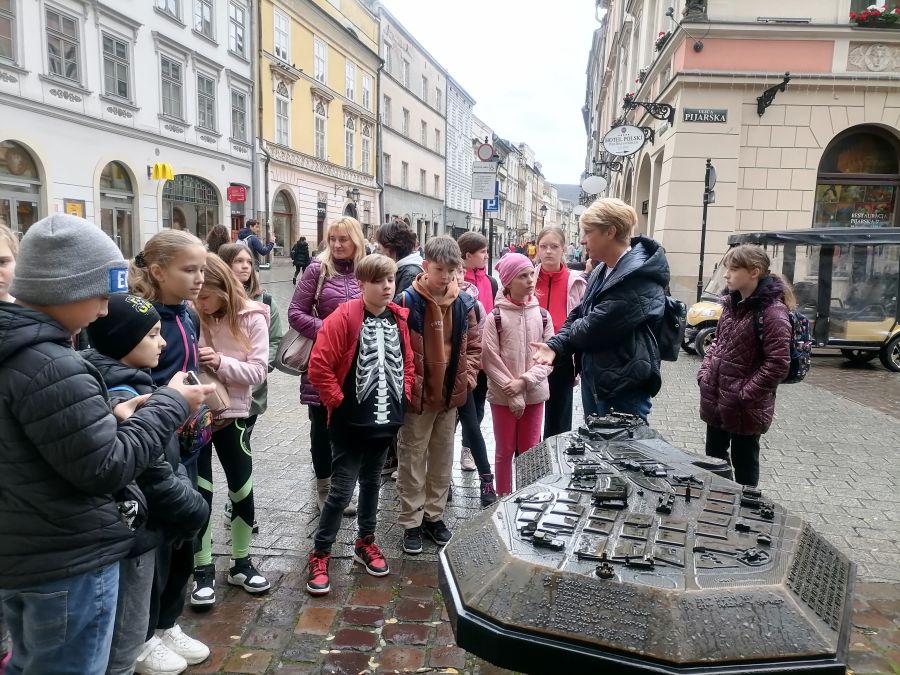 W dniach 26 i 27 października 2023 r. uczniowie klasy VI, V, IV i III pod opieką wychowawców, pani Joanny Nosal i pani Krystyny Holik, udali się na dwudniową wycieczkę do Krakowa i Bochni. W pierwszym dniu trafiliśmy do Stołecznego Królewskiego Miasta Krakowa, gdzie przez średniowieczną Bramę Floriańską dotarliśmy do Rynku Głównego, Sukiennic, Collegium Maius. W godzinach popołudniowych udaliśmy się do Bochni. Tam w Muzeum Motyli ,,Arthropoda" mieliśmy okazję uczestniczyć w niecodziennej lekcji przyrodniczej. Ciekawe okazy motyli z całego świata urzekły nas swoją niezwykłością, różnorodnością barw. Następnie skorzystaliśmy z tężni solankowej przy Plantach Salinarnych i udaliśmy się na obiadokolację. Kolejnym punktem naszej wycieczki była wizyta w Kopalni Soli w Bochni. Po zjeździe pod ziemię windą górniczą, przejażdżce pociągiem i zakwaterowaniu pod opieką przewodnika wyruszyliśmy na zwiedzanie trasy turystycznej z podziemną ekspozycją multimedialną. W tym miejscu poznaliśmy historię Bochni, odkryliśmy tajniki pracy górników, zapoznaliśmy się z legendą dotyczącą życia i działalności św. Kingi, patronki górników solnych. W podziemiach, na głębokości 212 metrów, czekały na nas kolejne atrakcje, boisko do gry w piłkę nożną i koszykówkę oraz nocna dyskoteka. Po wyczerpującym i pełnym emocji dniu noc spędziliśmy w kopalni, wykorzystując lecznicy mikroklimat tego miejsca. Następnego dnia, tuż po śniadaniu, udaliśmy się do Krakowa, by przejść traktem królewskim, zwiedzić Wawel, ujrzeć Smoka Wawelskiego. Zwieńczeniem naszej wędrówki była wizyta w Żywym Muzeum Obwarzanka. W tym miejscu odkryliśmy tajniki produkcji obwarzanka. Dowiedzieliśmy się o jego tradycji i wypieku. Każdy z uczestników warsztatów miał możliwość zrobienia własnego obwarzanka. Uczniowie po zajęciach warsztatowych otrzymali dyplom czeladnika obwarzanka krakowskiego. Te dwa dni na długo pozostaną w naszej pamięci.