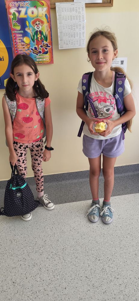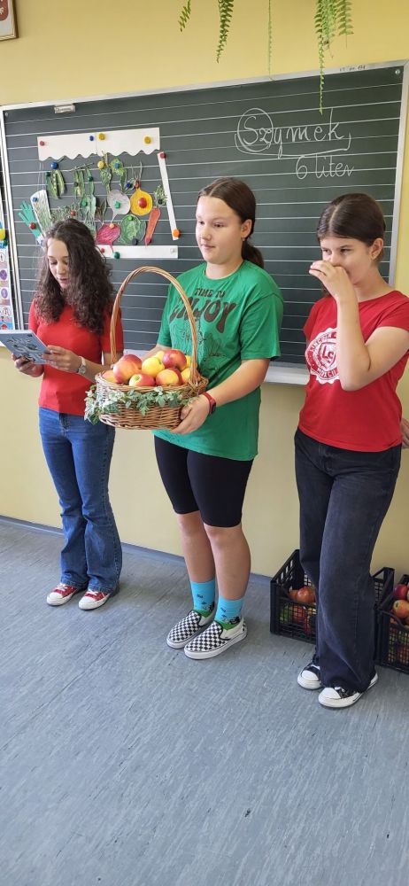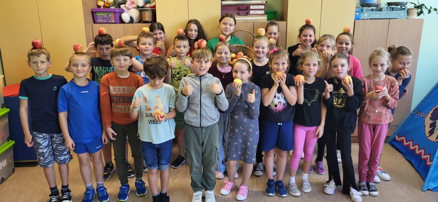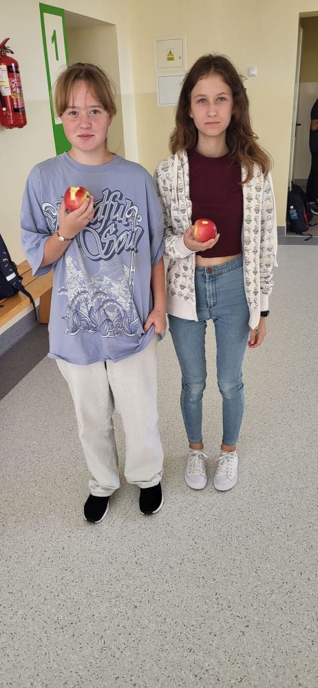 Dnia 28 września już po raz drugi obchodziliśmy w naszej szkole "Światowy Dzień Jabłka". Uczennice z Samorządu Uczniowskiego przygotowały krótkie informacje na temat właściwości jabłek, ich odmian, upraw oraz dlaczego powinno się je jeść ze skórką. Przypomniały również, że owoce przed spożyciem należy umyć. Przekazywanie tej wiedzy było urozmaicone różnymi zabawami i konkursami.