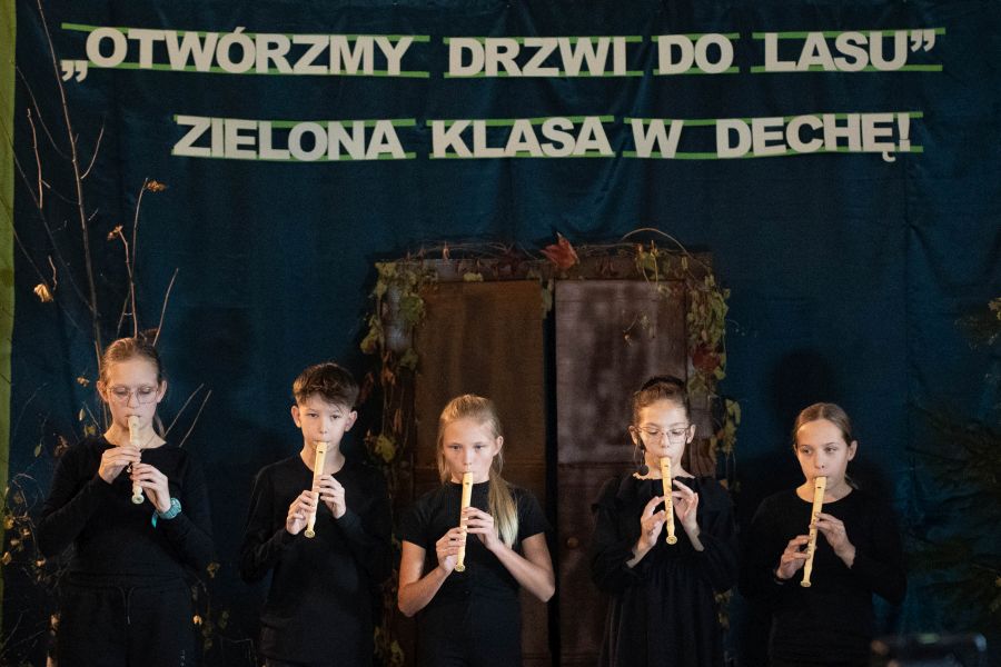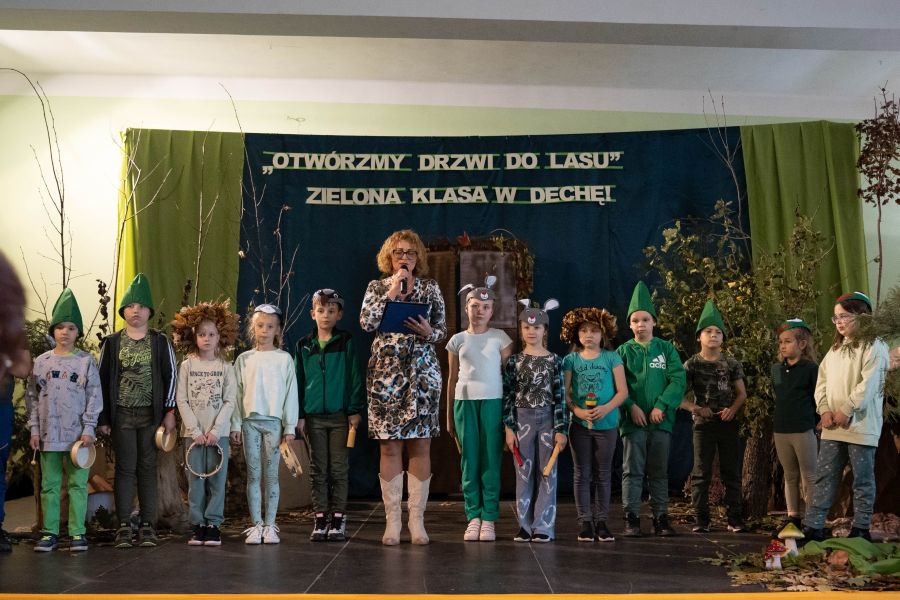 Podsumowanie projektu "Zielona klasa w dechę!" miało bogatą oprawę. Na scenie popisywali się uczniowie, tańczyli, śpiewali, koncertowali na różnych instrumentach, recytowali, inscenizowali . Przedszkolaki zaprezentowały najnowsze trendy mody ekologicznej. Furorę zrobiły Kobiety Aktywne ze swoją wersją sceniczną znanej bajki. W przerwach oblegane były stoiska z ciastem, małą garmażerią. Wielką popularność zyskali pracownicy Nadleśnictwa, demonstrując fantastyczne leśne bogactwa. Zalety drewna jako tworzywa można było podziwiać na stoisku wyrobów stolarskich, zaś największym zainteresowaniem cieszyły się różne gatunki miodów i wytworów pszczelarskich. Losy loterii fantowej rozeszły się jak ciepłe bułeczki, każdemu dopisało szczęście, każdy odchodził z wielkim uśmiechem. Dzieci skorzystały z bogatej oferty, licznie garnęły się do malowania twarzy, ale i malowania na drewnie bądź kartonach. Ochoczo podskakiwały na dmuchawcach. Strażacy demonstrowali różnorodne zakresy swojej działalności. Można było odbyć przejażdżkę zabytkowymi autami, przyglądać się akcji rozcinania rozbitych pojazdów. Zainteresowani sięgnęli po nadzwyczajny numer "Prześwietlacza". Podziwiali pokonkursową wystawę "Zabawka z lasu".