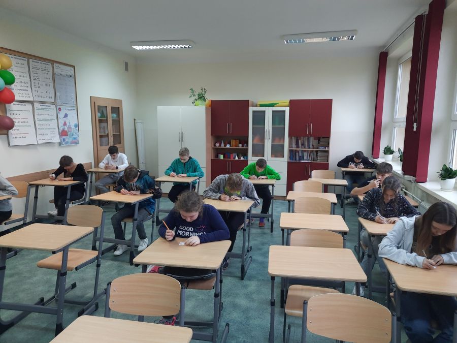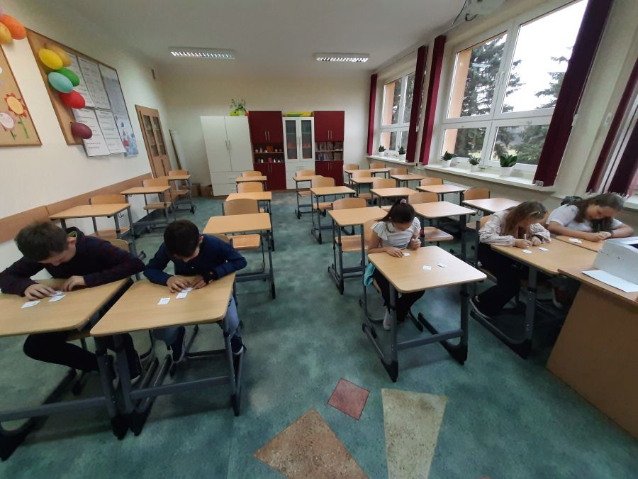 Czwartoklasiści byli niezwykle zmotywowani pełnieniem ważnej funkcji egzaminatora. Wszystko odbywało się pod okiem matematyczek, które czuwały nad poprawnością przeprowadzanych egzaminów.
