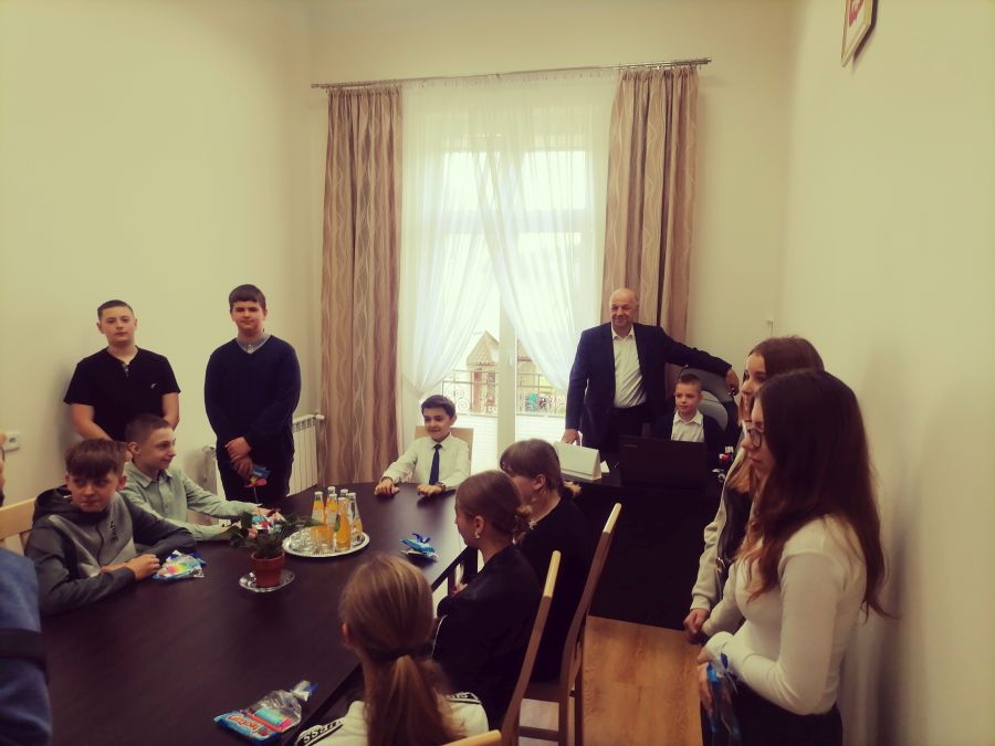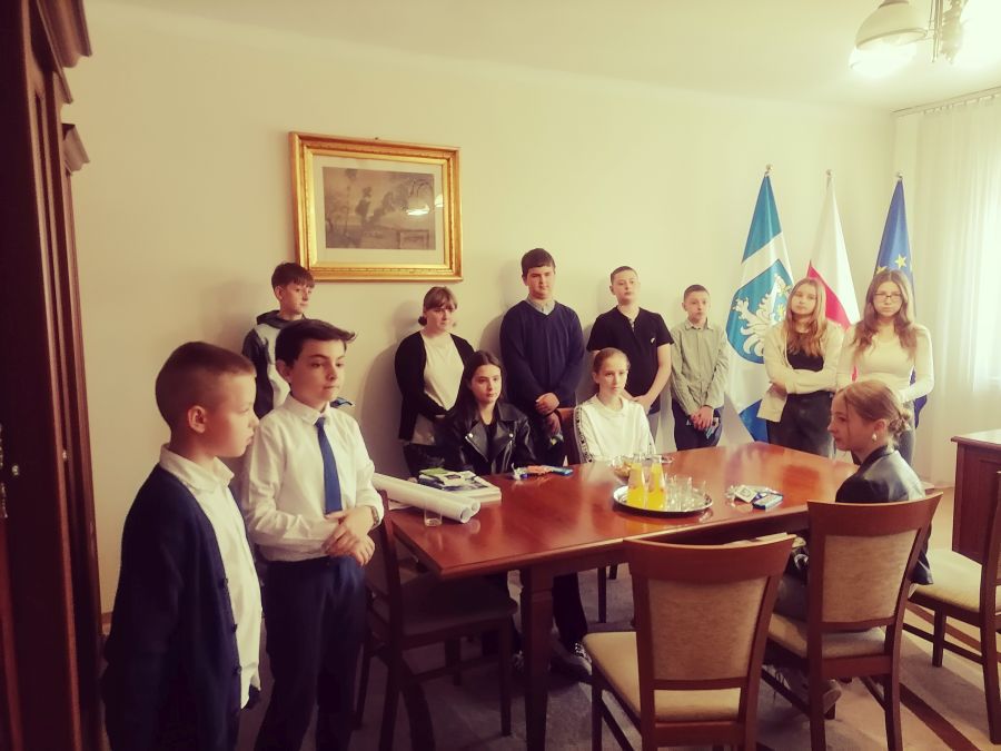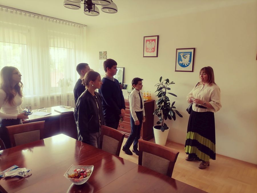 Dnia 30 maja br. uczniowie klasy VI udali się do Urzędu Gminy Gorlice, gdzie ich kolega, Szymon Dąbrowski, w nagrodę za zajęcie I miejsca w konkursie literackim „Pędzlem i piórem o tej, która sercu najbliższa”, na kilka godzin przejął obowiązki Wójta. Spotkanie to stanowiło również okazję, by dowiedzieć się, na czym polega praca Wójta oraz Przewodniczącego Rady Gminy, poznać specyfikę pracy, zakres obowiązków urzędników gminy. Młodzież podczas wizyty miała okazję poznać nowe środowisko pracy, porozmawiać z pracownikami, zgłębić wiedzę o zawodach i kompetencjach zatrudnionych w tej instytucji osób. Na spotkanie z młodzieżą przebyła także Pani Agata Cup – pełnomocnik wójta ds. oświaty, która po raz kolejny była pomysłodawcą gminnego konkursu literacko - plastycznego oraz inicjatorem obchodów Dnia Dziecka.