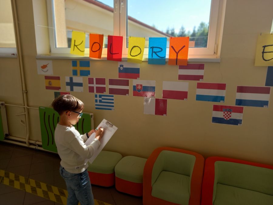 Z okazji Dnia Unii Europejskiej uczniowie klas I–III wzięli udział w szkolnym konkursie "Kolory Europy". Zadaniem uczestników było rozpoznanie 27 flag państw członkowskich UE. Bezbłędną znajomością wszystkich flag wykazali się: