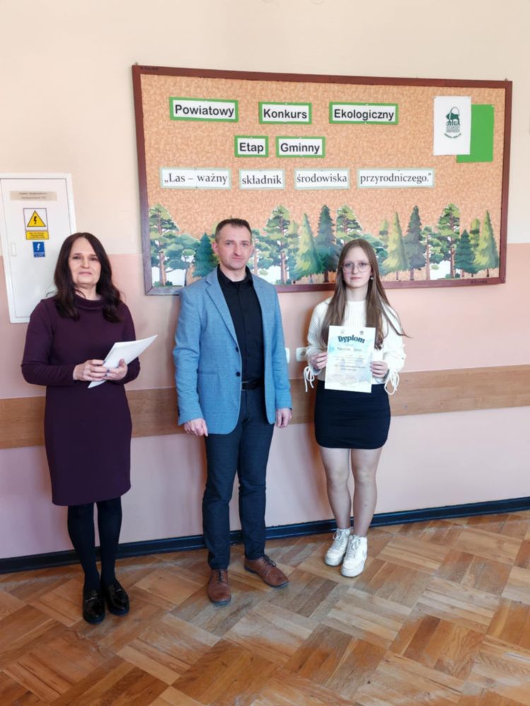 Liga Ochrony Przyrody jest organizatorem konkursu "Las-ważny składnik środowiska przyrodniczego". Etap gminny odbył się dnia 20 marca w Szkole Podstawowej im. Adama Mickiewicza w Dominikowicach. Konkurs przebiega w trzech etapach. Na każdym poziomie uczniowie rozwiązują test złożony z zadań zamkniętych. Naszą szkołę reprezentowali uczniowie: Weronika Kuk i Mateusz Bargieł z klasy ósmej oraz Karolina Jamro z klasy siódmej. Dziękujemy za chęć wykazania się wiedzą ekologiczną.