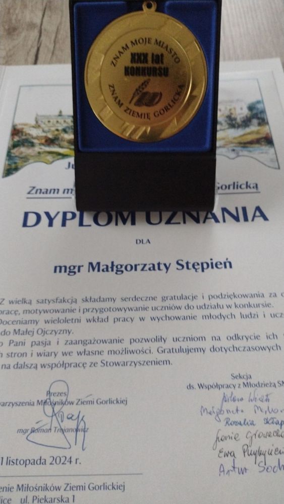 Niebywały sukces odnotowały uczennice naszej szkoły w XXX edycji Konkursu "Znam moje Miasto – znam Ziemię Gorlicką" pt. "Jakie jest Twoje ulubione, a mało znane miejsce na Ziemi Gorlickiej?" Niezmordowanym organizatorem jest Stowarzyszenie Miłośników Ziemi Gorlickiej. Wpłynęło 26 prac z 13 szkół powiatu. Komisja do finału zakwalifikowała cztery, w tym dwie ze Szkoły Podstawowej im. KEN w Zagórzanach. We czwartek 21 listopada w auli ZPSM obie uczestniczki zachwyciły swoimi wyjątkowymi wystąpieniami. Maja Bukowska w prezentacji "Dębie wysoki, dębie rozłożysty, przychodzę do Ciebie z ochotą" skutecznie zachęcała do odnalezienia Pomnika Przyrody "Aleksander" i zajęła najwyższe miejsce. Anna Uszko w prezentacji "Każde miejsce, które odwiedzasz, staje się w jakiś sposób częścią Ciebie" profesjonalnie odkrywała walory historyczno-przyrodnicze Cmentarza Wojennego nr 125 i uplasowała się na trzeciej pozycji. Zmagania były na wysokim poziomie, liczył się każdy punkt. Tym większa satysfakcja z dyplomów oraz nagród pieniężnych i rzeczowych.