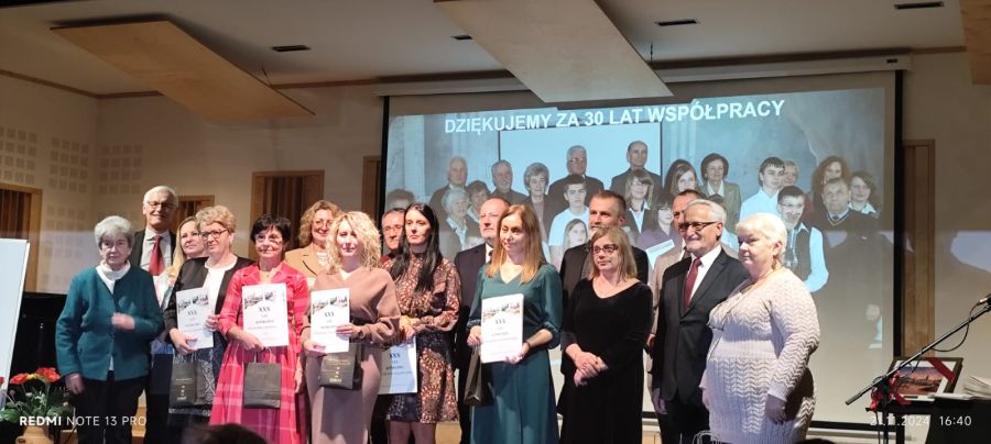 Podczas uroczystej gali list uznania i medal okolicznościowy w podziękowaniu za szczególnie aktywny udział w konkursach odebrała Dyrektor Iwona Jamro oraz nauczycielka Małgorzata Stępień.