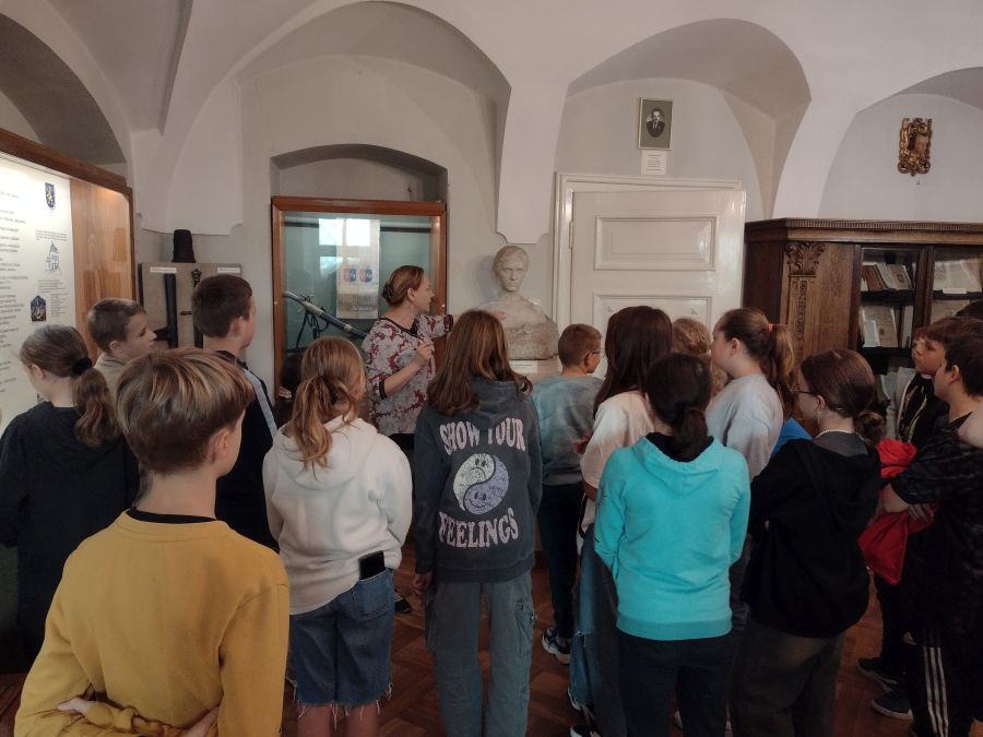 Właśnie dziś 25 września należy przypomnieć o 93. rocznicy śmierci Aleksandra hr. Skrzyńskiego. Dla mieszkańców Zagórzan jest rodakiem, tu się urodził i tu spoczywa. Był pierwszym polskim ministrem spraw zagranicznych w rozumieniu europejskim i to jednym z najzdolniejszych. Aleksander hr. Skrzyński zabłysnął na arenie międzynarodowej, do dziś przez wielu uznawany jest za jednego z najwybitniejszych Polaków. Pokazał, że ciężką pracą można zajść bardzo daleko. Za swoje wybitne zasługi był wielokrotnie odznaczany. Uczniowie klasy piątej przeprowadzili rekonesans, na ile rodzina Skrzyńskich wpisała się w lokalną pamięć, ile śladów można znaleźć w zasobach Muzeum Regionalnego oraz przestrzeni miejskiej. Podążając za wskazówkami, szukali miejsc wyróżniających się dziedzictwem kulturowym. U zbiegu ulic 3 Maja i Jagiełły znaleźli pamiątkową tablicę na budynku dawnego Starostwa Powiatowego. Warsztaty muzealne to dobry sposób zaspokajania ciekawości poznawczej młodzieży.