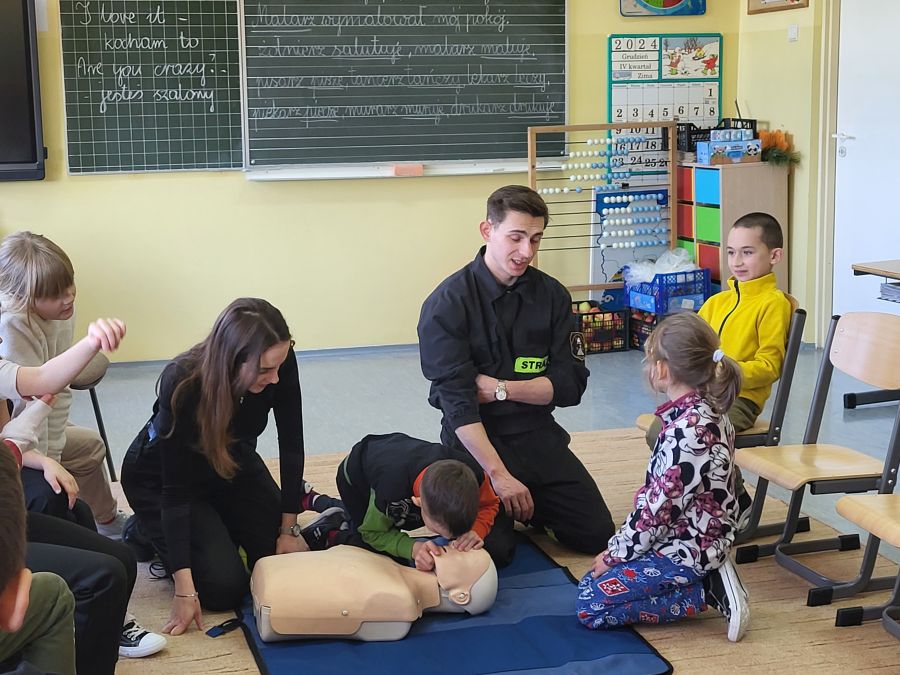 W podstawie programowej, obowiązującej od 1 września 2024 r., w klasach I–III szkoły podstawowej, w wymaganiach z zakresu edukacji przyrodniczej jest obecny wymóg znajomości podstawowych zasad udzielenia pierwszej pomocy. W naszej szkole we wtorek 3 grudnia br. uczniowie I etapu edukacyjnego uczestniczyli w warsztatach z udzielania pierwszej pomocy osobom, które uległy nagłym wypadkom.