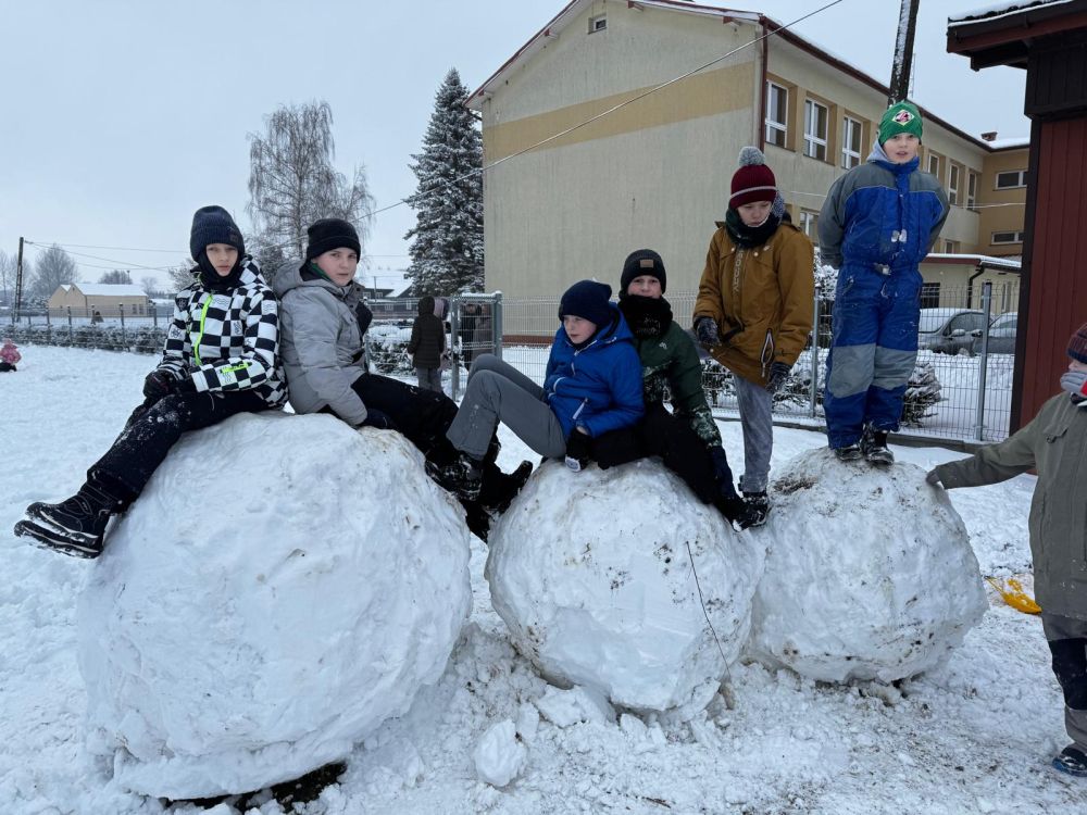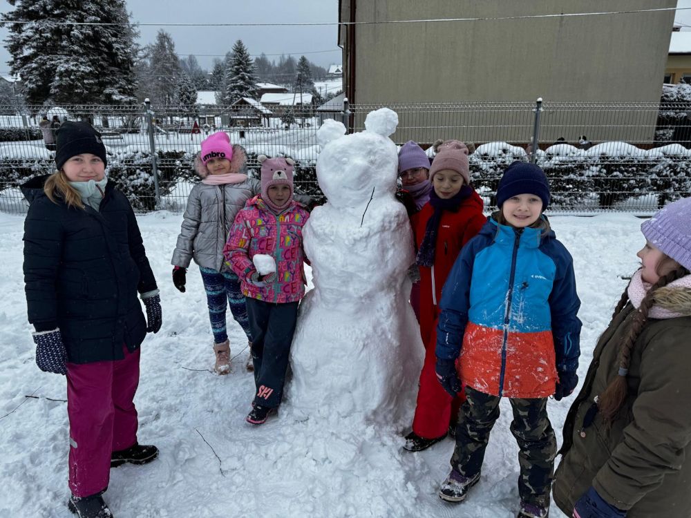 Nareszcie mamy nie tylko astronomiczną zimę. Właśnie w środę 15 stycznia przeżywaliśmy białą lekcję. Wszyscy uczniowie pod opieką nauczycieli ochoczo wyszli na szkolne boisko. Gruba warstwa śniegu i sprzyjająca pogoda zainspirowała do tworzenia bałwanów i postaci bajkowych. Niektóre były sporych rozmiarów. Były aniołki, bitwy na śnieżki. Duża porcja ruchu na świeżym powietrzu zapewniła wszystkim dotlenienie, wywołała mnóstwo śmiechu i zadowolenia. Z rumieńcami na twarzach podziękowaliśmy Samorządowi Uczniowskiemu i pani Joannie Cieśli za fantastyczną zabawę.