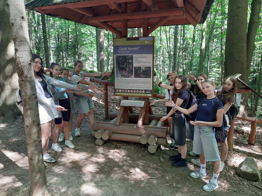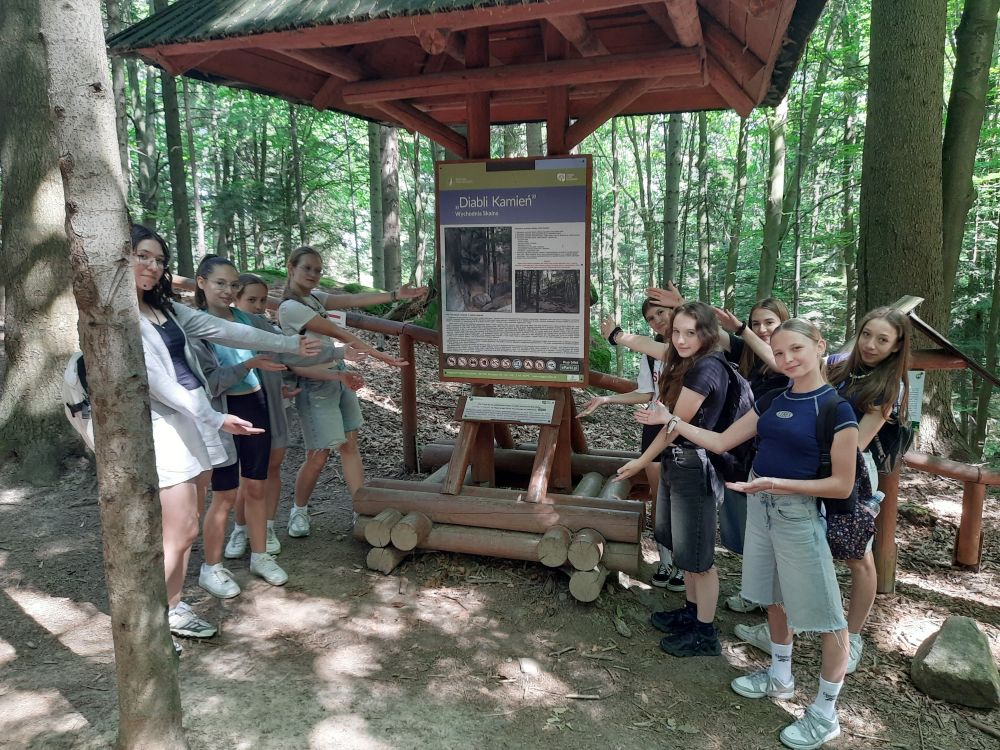 Dnia 18 czerwca br. uczniowie klasy VII i VIII pod opieką wychowawców udali się na wycieczkę do Folusza. Wyjazd ten stanowił okazję do tego, by uczniowie najstarszych klas po latach wspólnej nauki i zabawy mogli miło i aktywnie spędzić czas, wspominając szkolne przygody. Na początku wyruszyliśmy ścieżką przyrodniczą na Diabli Kamień, a następnie nad Wodospad Magurski. Odkryliśmy walory turystyczne pobliskich okolic. Piękno krajobrazu oraz urzekająca ścieżka przyrodnicza przyjemnie nas zaskoczyły, gdyż mimo upału nie odczuwaliśmy zmęczenia. Następnie w Parku Wędkarskim odbyło się spotkanie przy ognisku a po nim zajęcia sportowe. Ten wspólnie spędzony dzień na długo pozowanie w pamięci naszych wychowanków, a wspomniany po latach wywoła uśmiech na niejednej twarzy.