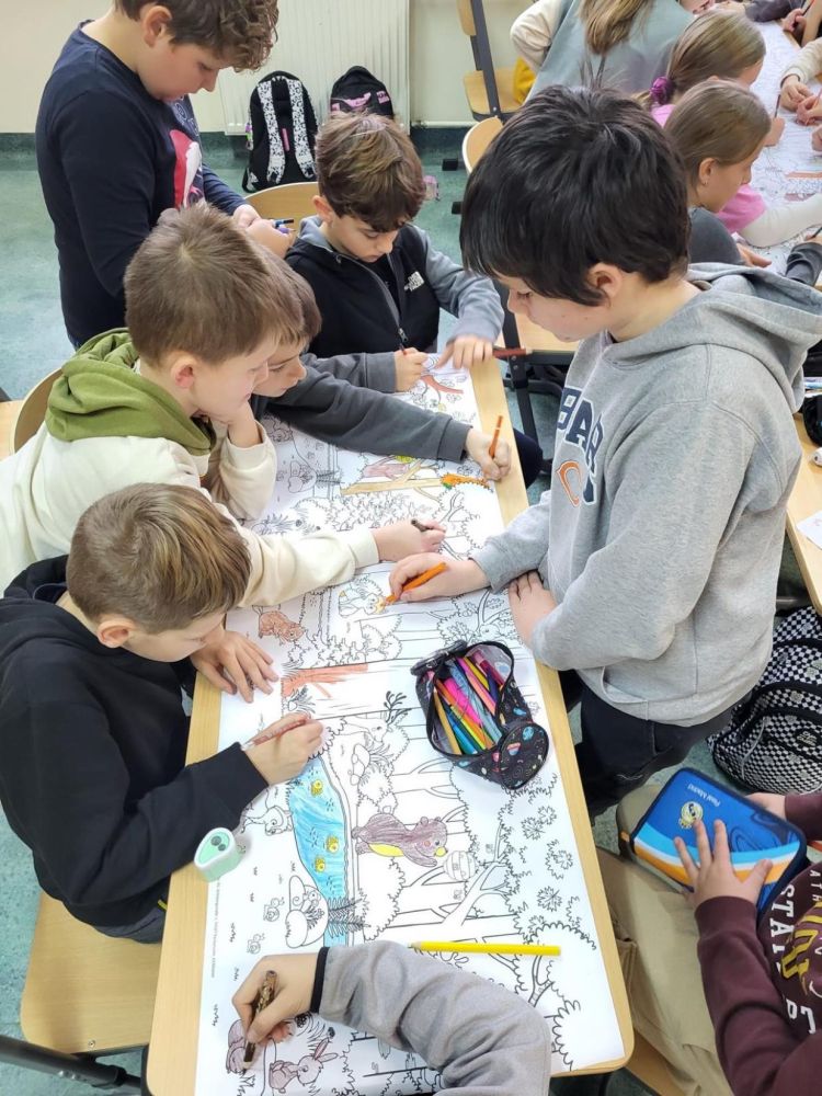 Złocista aura jesienna wypełniła szkolną przestrzeń w minionym tygodniu. Za oknami panowała listopadowa szaruga, lecz serca wypełniały ciepłe uczucia, na ustach królował promienny uśmiech. Wcielaliśmy się w różne role Myszki Miki Trenowaliśmy sposoby powitań i pisaliśmy serdeczne pozdrowienia. W strefie kocykowej czekała aromatyczna herbatka. Piątek upłynął pod znakiem kolorowych kredek i jesiennych obrazków. Było wesoło i kolorowo. Dzięki inicjatywie Samorządu Uczniowskiego nasze nastroje pokonały szarość listopadowych dni.