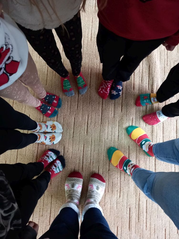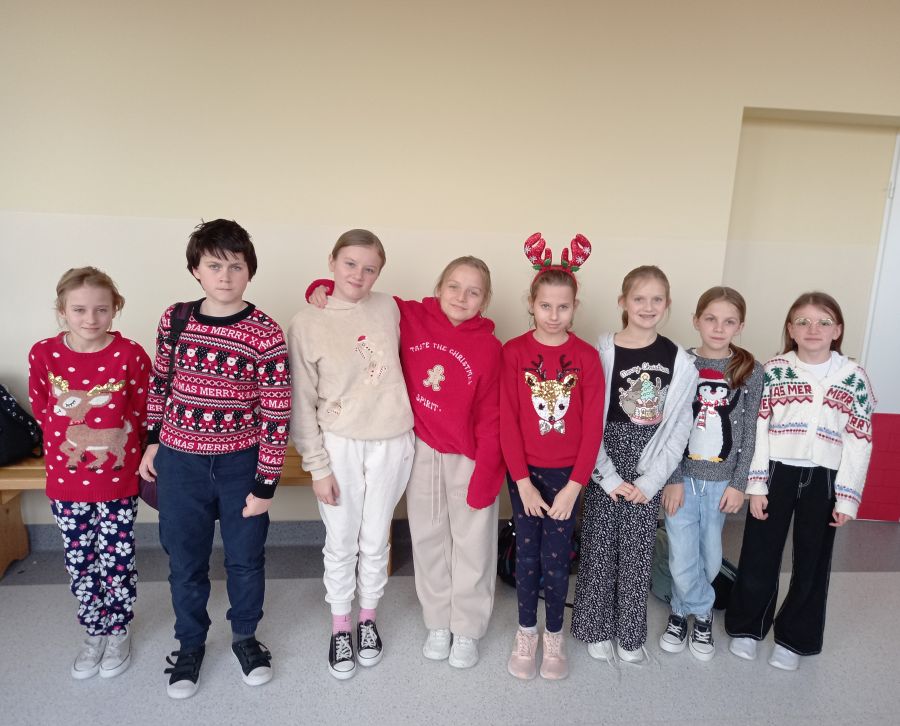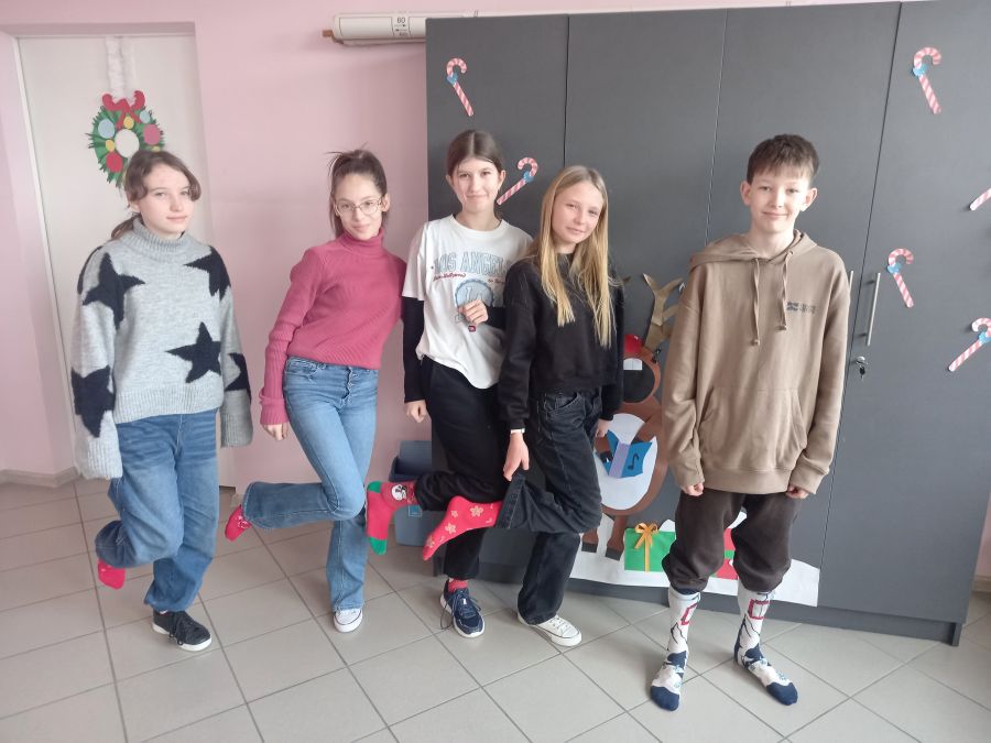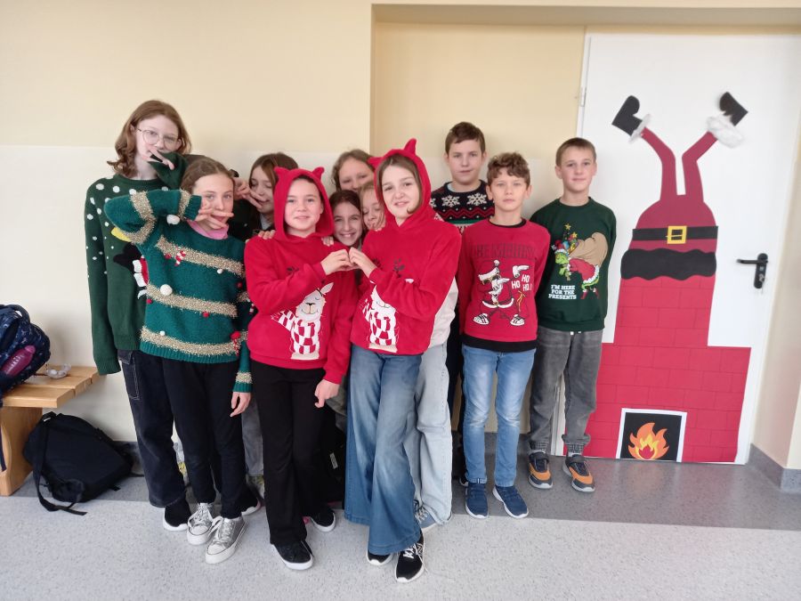 Nasze sale i korytarze nabrały świątecznego kolorytu. Każda klasa zadbała o atrakcyjną dekorację swoich drzwi, które prowadzą do pomieszczeń wypełnionych świątecznymi łańcuchami, gwiazdkami, świecidełkami i światełkami. Lekcje przedmiotowe nabrały zdecydowanie większego uroku. Uczniowie zaprezentowali bogaty asortyment skarpetek i sweterków tematycznych. Było ogromne urozmaicenie wzorów i barw. Czwartek wypełniły spotkania duże i małe. Najpierw w sali gimnastycznej obejrzeliśmy widowisko "Niebo-Piekło", a potem w swoich salach nacieszyliśmy się sobą, atmosferą świąteczną, posmakowaliśmy potraw i słodkości. Piątek wypełniły nastrojowe pastorałki, piosenki i kolędy. I tak urozmaicony przez Szkolne Koło Wolontariatu i Samorząd Uczniowski tydzień grudniowy przeprowadził wszystkich przez przełomowy czas pożegnania jesieni, przywitania zimy. Pani Katarzyna Ciapaj był koordynatorką działań. Wszyscy czekamy na piękne białe Boże Narodzenie.